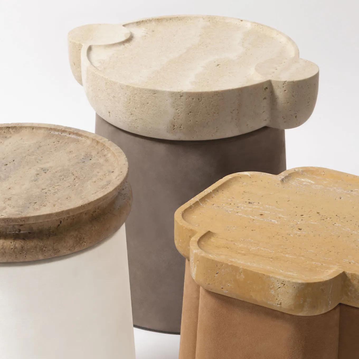 Palladio è una linea di tavolini che gioca con le forme e i materiali. Basi minimali rivestite in finissima pelle italiana su cui poggiano forme essenziali e pulite in travertino (disponibile in una selezione di cinque nuance) con dettagli di pregio: con l’obiettivo di unire la bellezza dell’Arte Classica e un fascino moderno e grafico, questa combinazione esalta la diversità di texture e colori, dando vita a pezzi iconici dal fascino magnetico. Dimensioni personalizzate disponibili su richiesta.