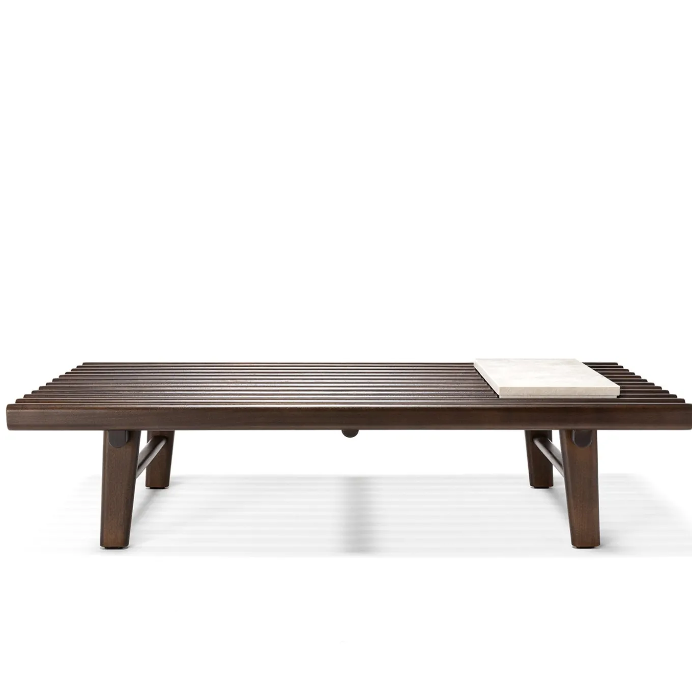 Un design a doghe che emana un senso di calma ed eleganza senza sforzo contraddistingue questo tavolino rettangolare in pregiato mogano Sapelli arricchito da una finitura Barrique. Disegnato da Massimo Castagna per la Collezione Elba, si abbina naturalmente al divano modulare della stessa serie per un effetto coerente e multifunzionale. Si prega di informarsi presso il Concierge sulle varianti di finitura disponibili e sul prezzo della copertura protettiva. Se i prodotti sono collocati completamente all’esterno, si consiglia l’acquisto di copriletto a prezzo maggiorato. Contattare il Concierge per ulteriori informazioni e opzioni.