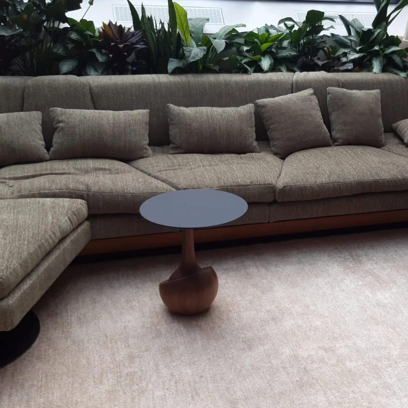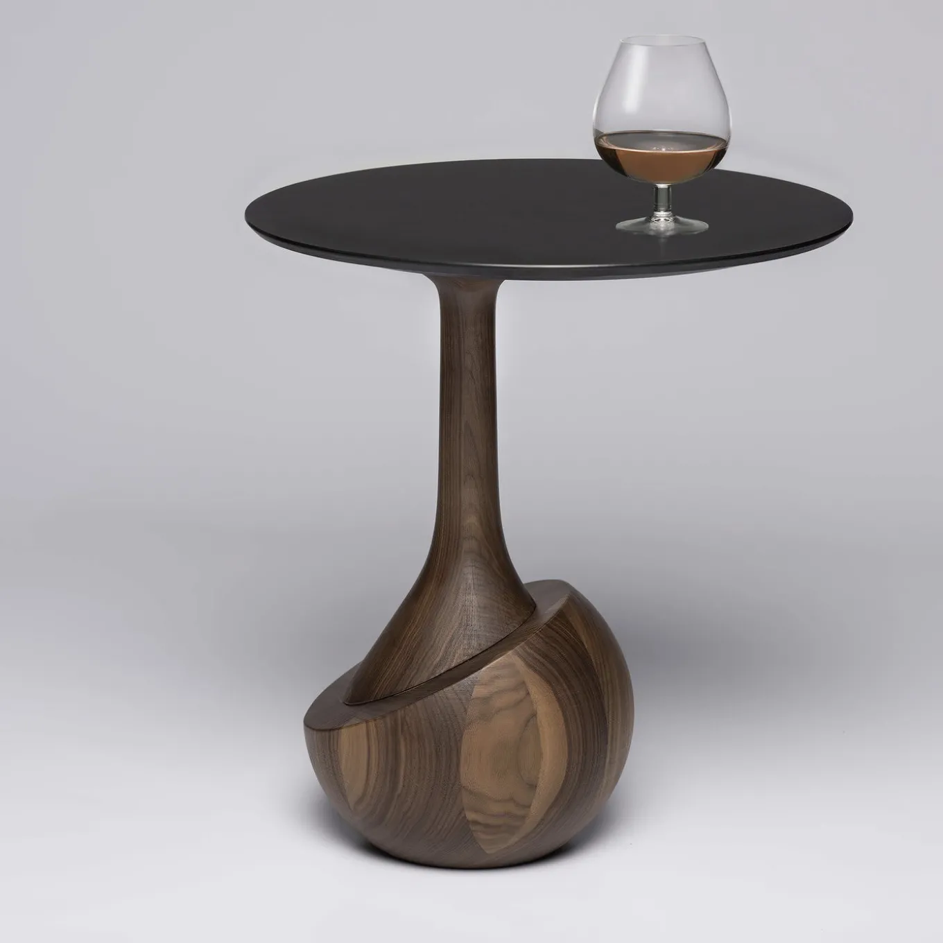 Questo esclusivo tavolino combina materiali tradizionali e innovativi con un design che rende omaggio al grande designer italiano Achille Castiglioni. L’accattivante base è realizzata in noce canaletto e presenta una silhouette scultorea con un’unica gamba affusolata inserita in un globo tagliato in diagonale. Il piano rotondo è in FENIX NTM®, un materiale nanotecnologico con finitura nera opaca che unisce un’estetica elegante a prestazioni tecnologiche. Vera e propria opera d’arte, questo pezzo di artigianato di alta gamma troverà la sua collocazione migliore in un salotto monocromatico e contemporaneo.