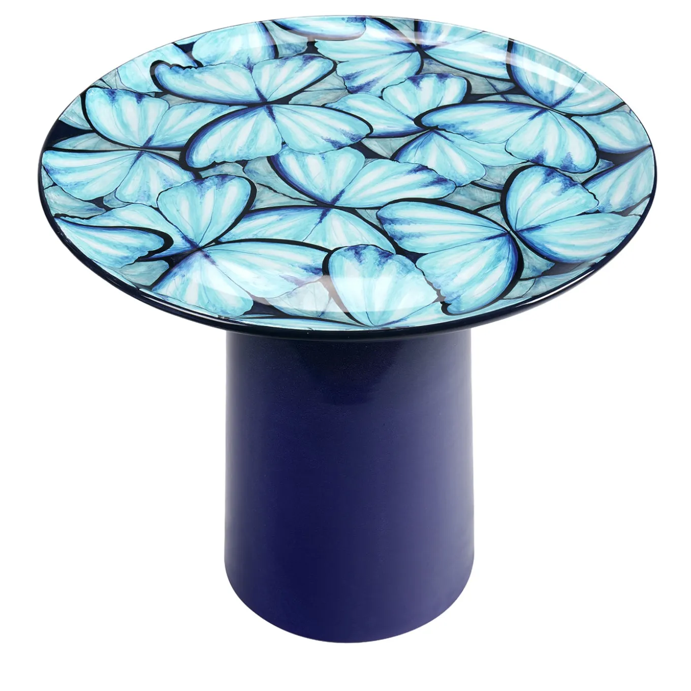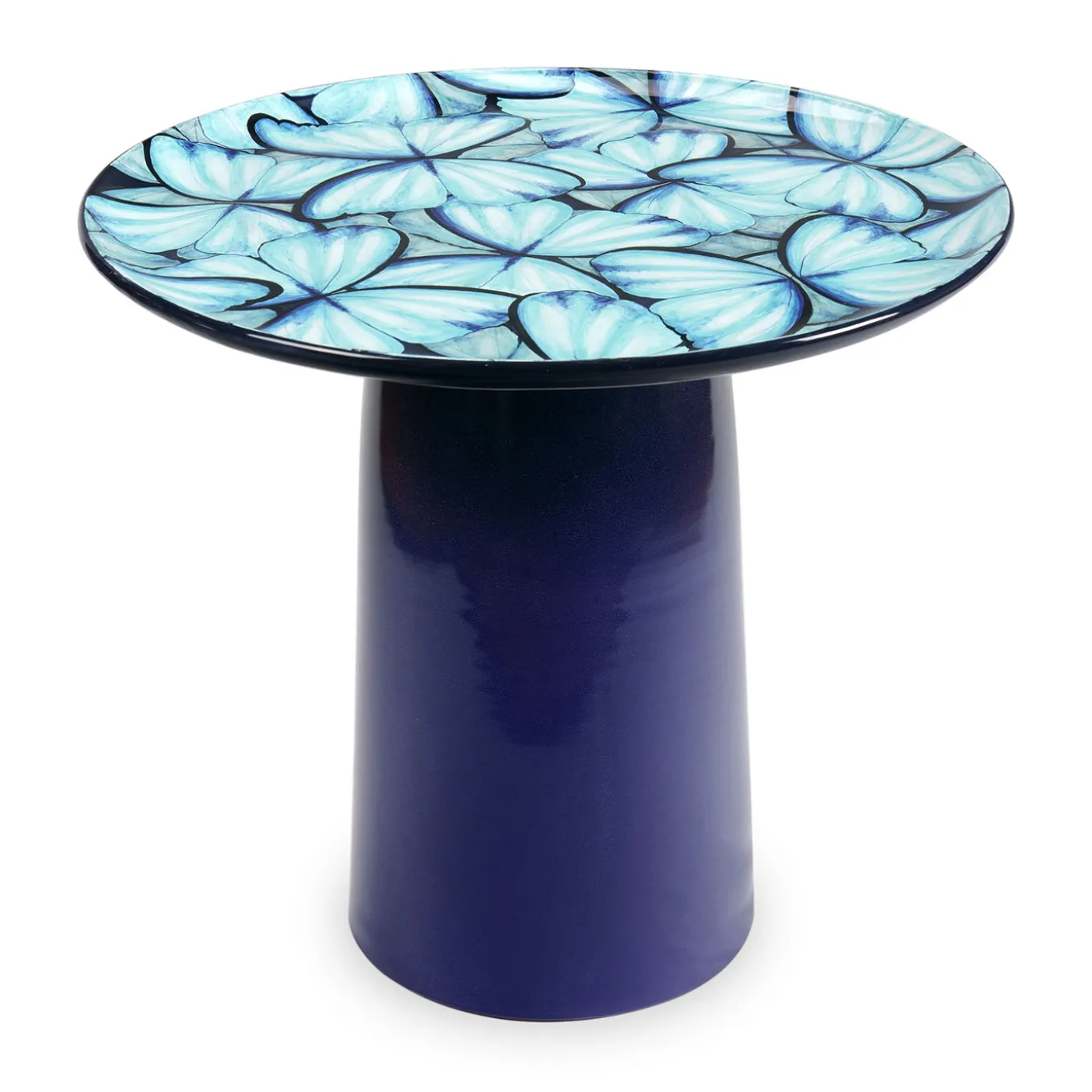 Ispirato all’eleganza delicata della farfalla blu, simbolo eterno di trasformazione e gioia, questo tavolino unisce raffinato stile artistico a un design funzionale. La superficie in maiolica smaltata mostra pennellate stratificate che spaziano dal tenue azzurro cielo al profondo blu notte. Composto da due elementi — piano e base — si monta facilmente tramite una vite in acciaio inox inserita in un giunto di faggio tornito e oliato, garantendo stabilità nel tempo. Ogni pezzo, numerato singolarmente, fa parte di un’edizione limitata di 50 unità. Essendo completamente realizzato a mano, ogni tavolo presenta leggere variazioni che ne esaltano l’unicità e la maestria artigianale.