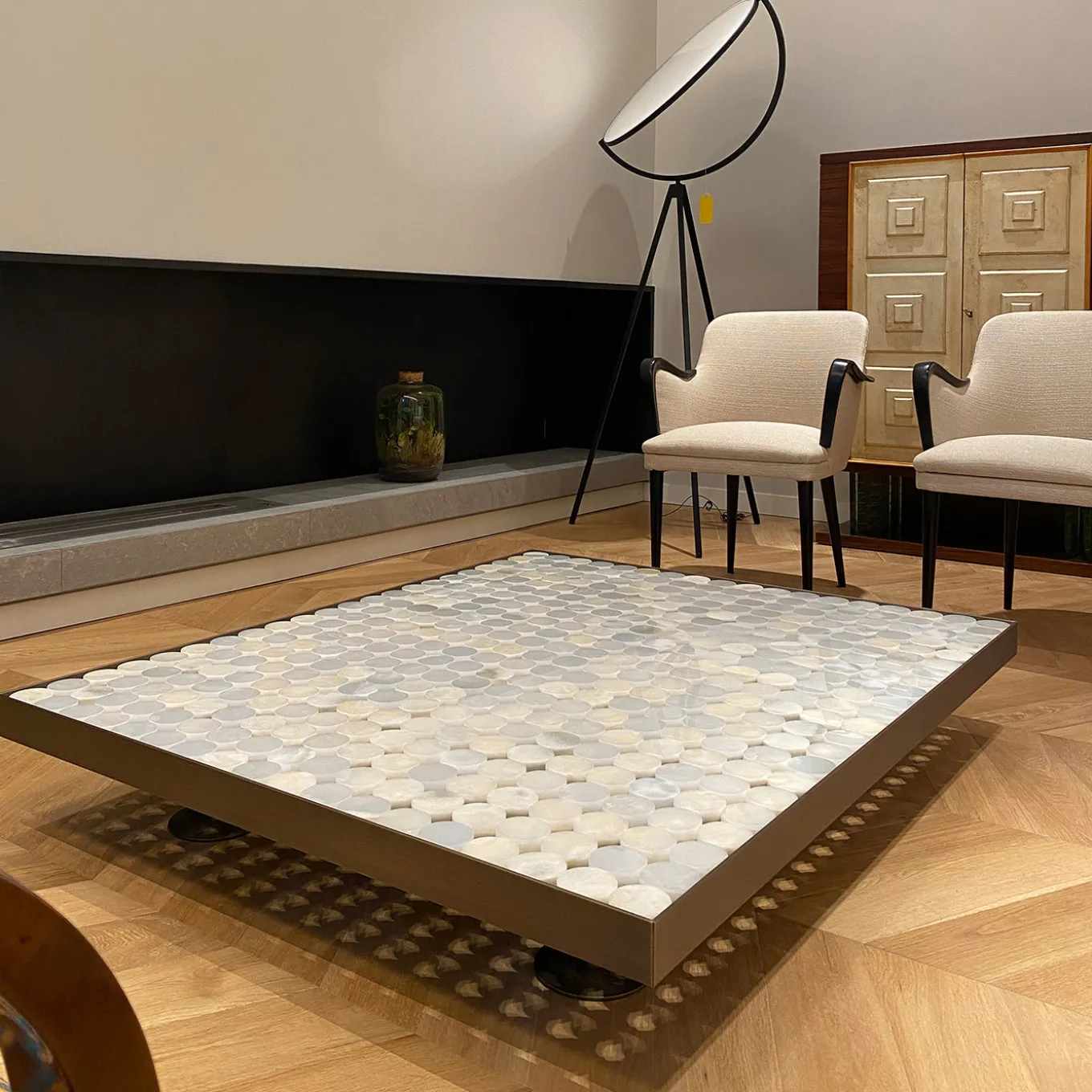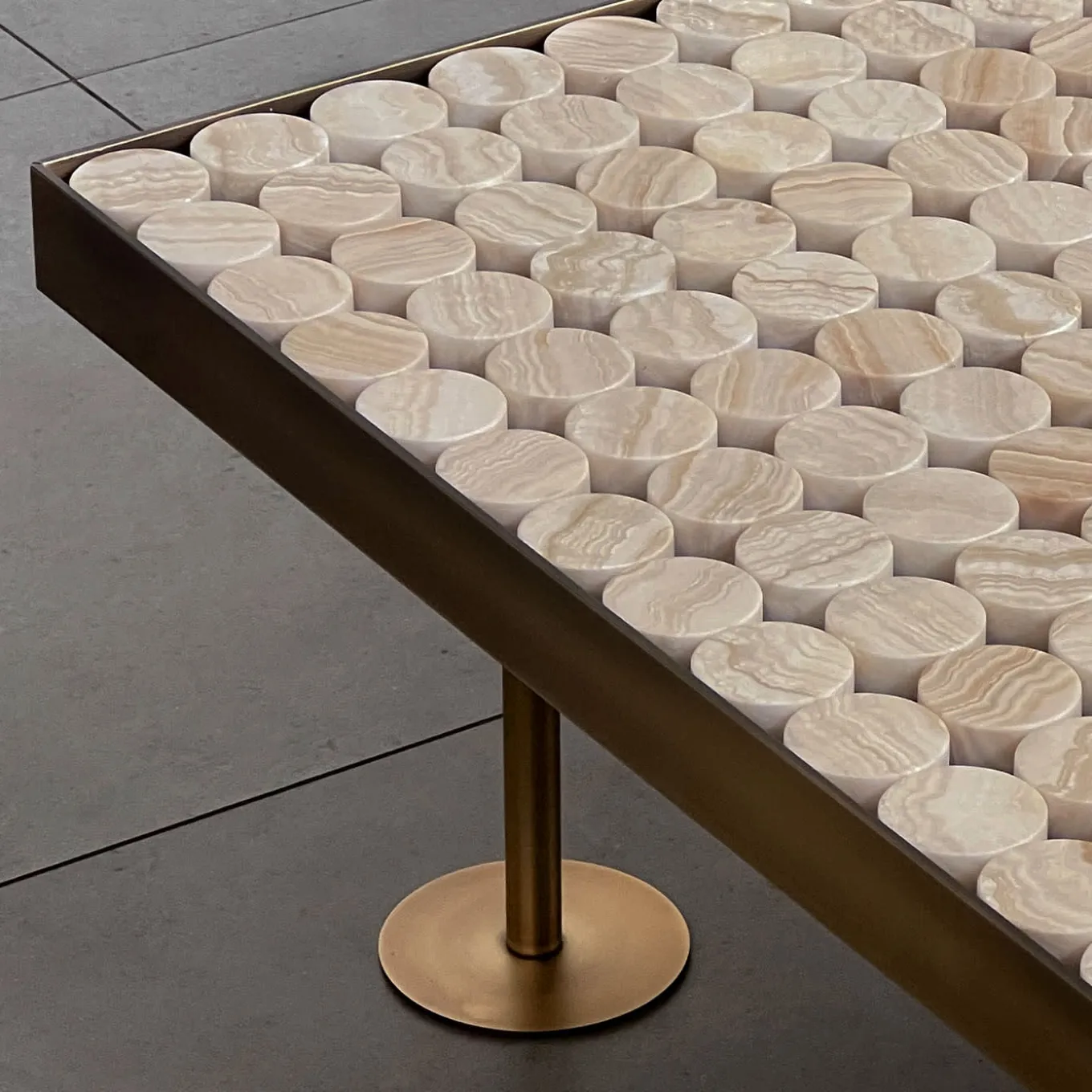 Sofia in onice tigrato fa parte della collezione coffee tables Sofia di mg12, disegnata da Monica Geronimi. Sofia è realizzato in acciaio brunito e tondini onice, con piedi in acciaio inox o acciaio inox brunito. Questa edizione del tavolino Sofia rievoca la bellezza eterna di un materiale classico dalla cromaticità bianca e venature miele, che dona a questo tavolo una raffinatezza unica e una texture inimitabile. Sofia è l’aggiunta sofisticata a ogni salotto. Dimensioni personalizzabili su richiesta.