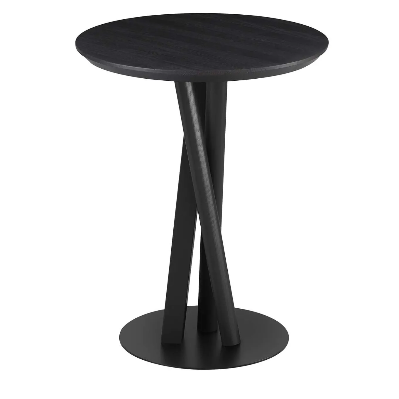 Caratterizzato da un elegante look total black, questo tavolino è ideale per arredamenti residenziali e commerciali. L’innovativa struttura è caratterizzata da tre gambe incrociate con silhouette geometriche diverse: rotonda, ovale e quadrata, per un look superbamente eclettico. La piattaforma rotonda in metallo richiama il piano rotondo e l’intera struttura è realizzata in legno massiccio di frassino. Il pezzo è personalizzabile in altezza e nella forma del piano su richiesta, chiedere al Concierge per i dettagli.