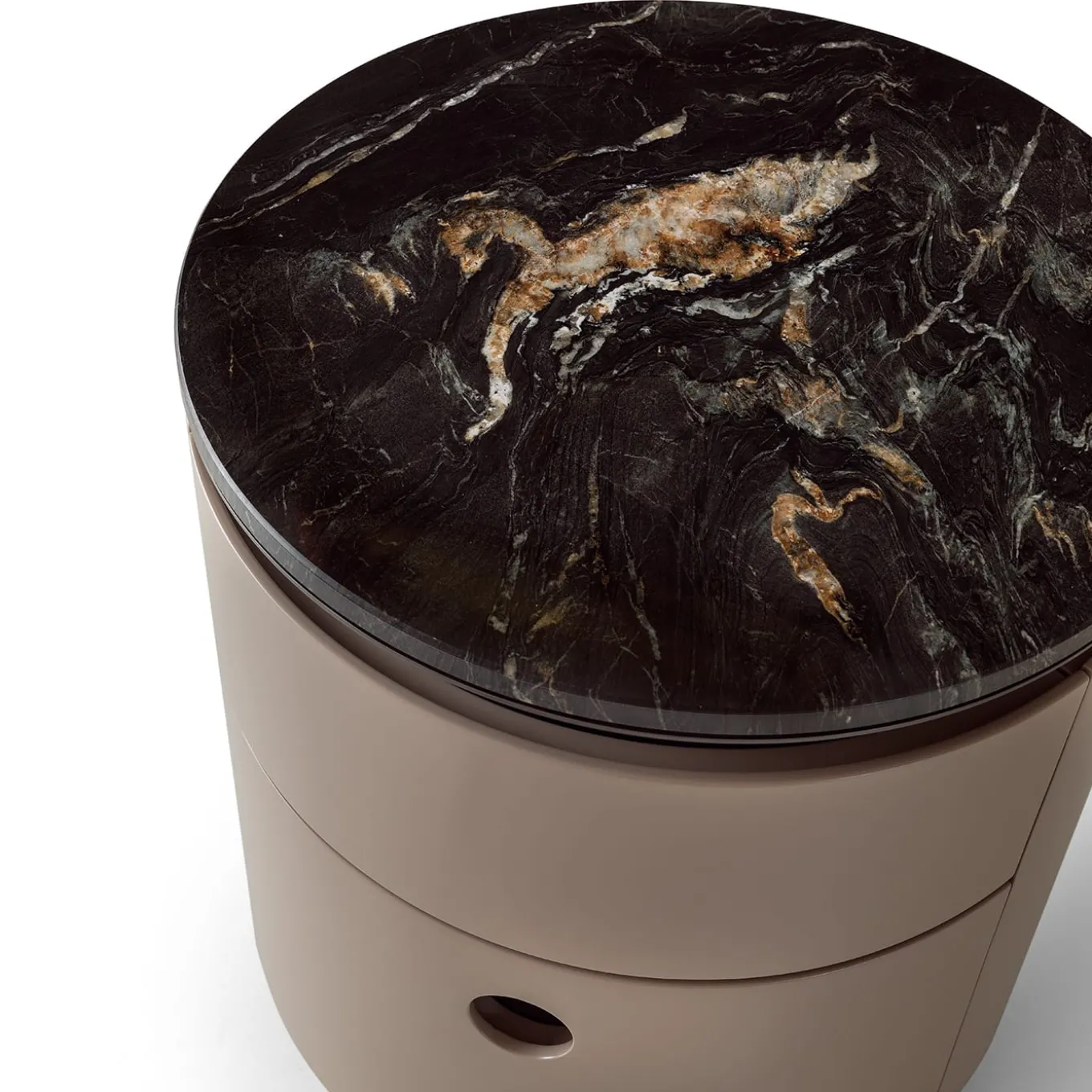Un sapiente connubio di forma e funzione, questo comodino è un’aggiunta elegante e funzionale all’arredamento della camera da letto. La silhouette perfettamente cilindrica, realizzata con una struttura in multistrato-MDF curvato e laccato caldo, è avvolta da una scocca in metallo con finitura beige e sormontata da un sublime piano in marmo Belvedere che riprende le tonalità delicate. Due cassetti con chiusura ammortizzata rivelano un ampio spazio per la vostra routine notturna. Da acquistare preferibilmente in coppia. Esplorate le opzioni di personalizzazione con il Concierge.