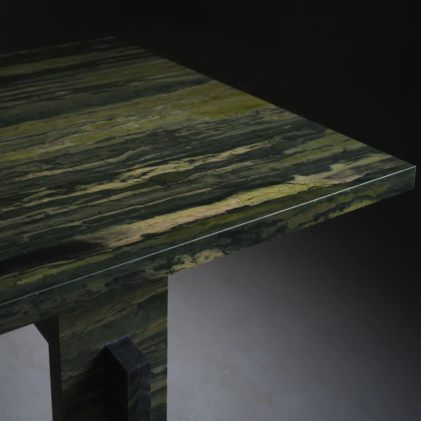 Majesty è un tavolo scultoreo caratterizzato da geometrie nette e precise e da una presenza materica di grande impatto. Ispirandosi ai tradizionali banchi da falegname, Christophe Pillet reinterpreta il tavolo in un design contemporaneo. La base è costituita da quattro sezioni rettangolari di 4 cm di spessore, leggermente incassate, che sostengono una trave centrale sotto un ampio piano rettangolare. Disponibile in diversi marmi, si adatta a spazi residenziali e uffici. Per ulteriori informazioni e opzioni, contattare il Concierge.