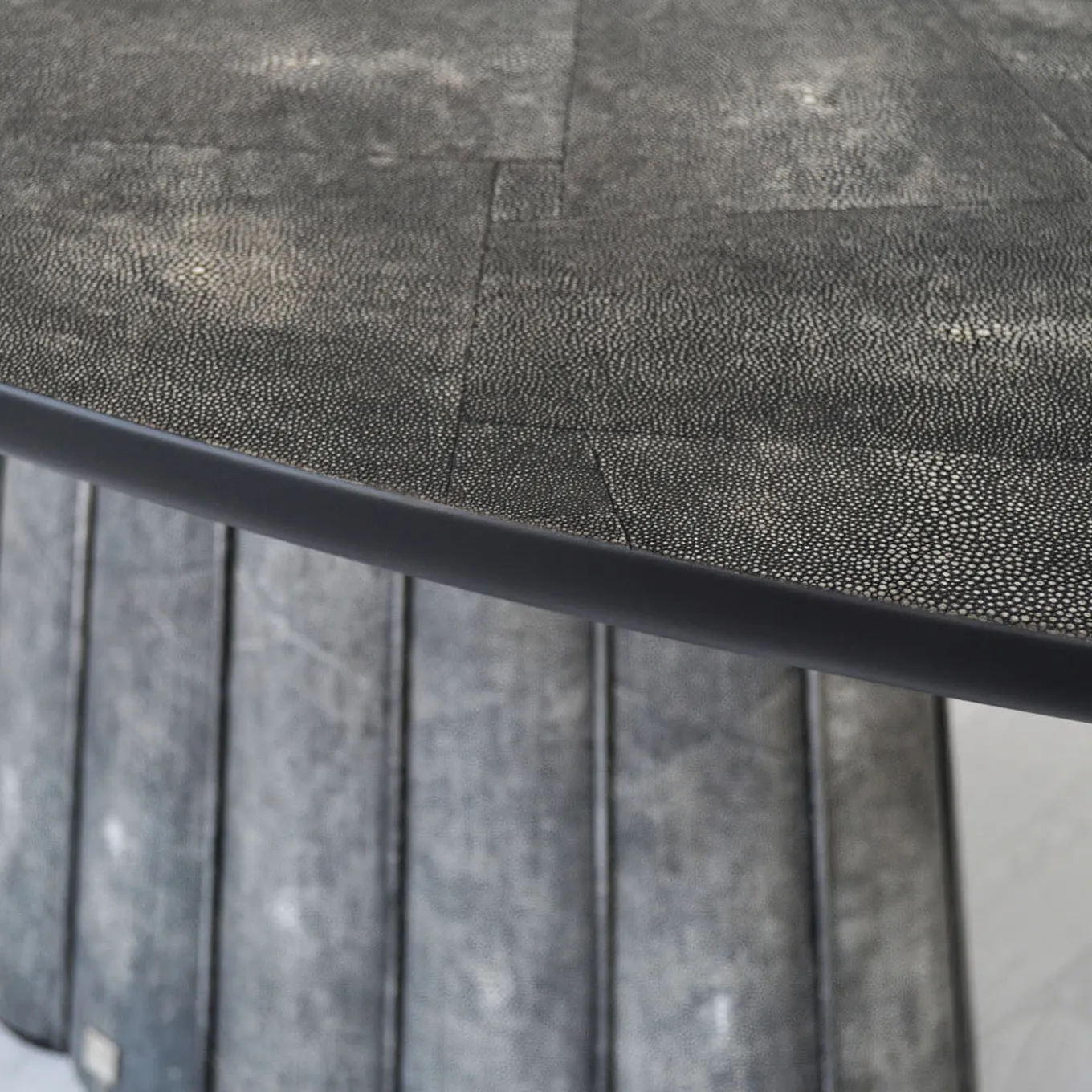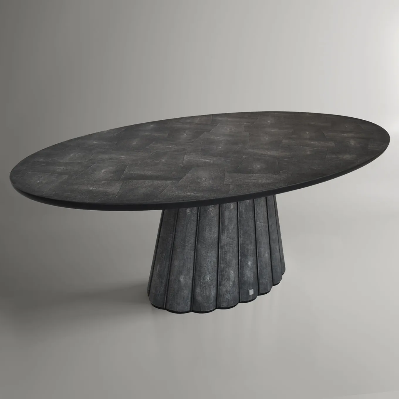 Un pezzo unico in cui l’esperienza ebanistica incontra l’eleganza sartoriale, questo tavolo da pranzo ovale – realizzato in legno e rivestito con un lussuoso effetto pelle Galuchat – è in grado di elevare qualsiasi pasto. Le sottili aste accentuano la texture smerlata della base, che contrasta con la perfetta morbidezza del piano ovale. Vi invitiamo a esplorare l’ampia gamma di colori personalizzabili con il Concierge.