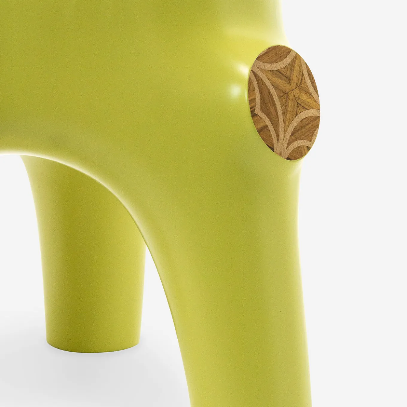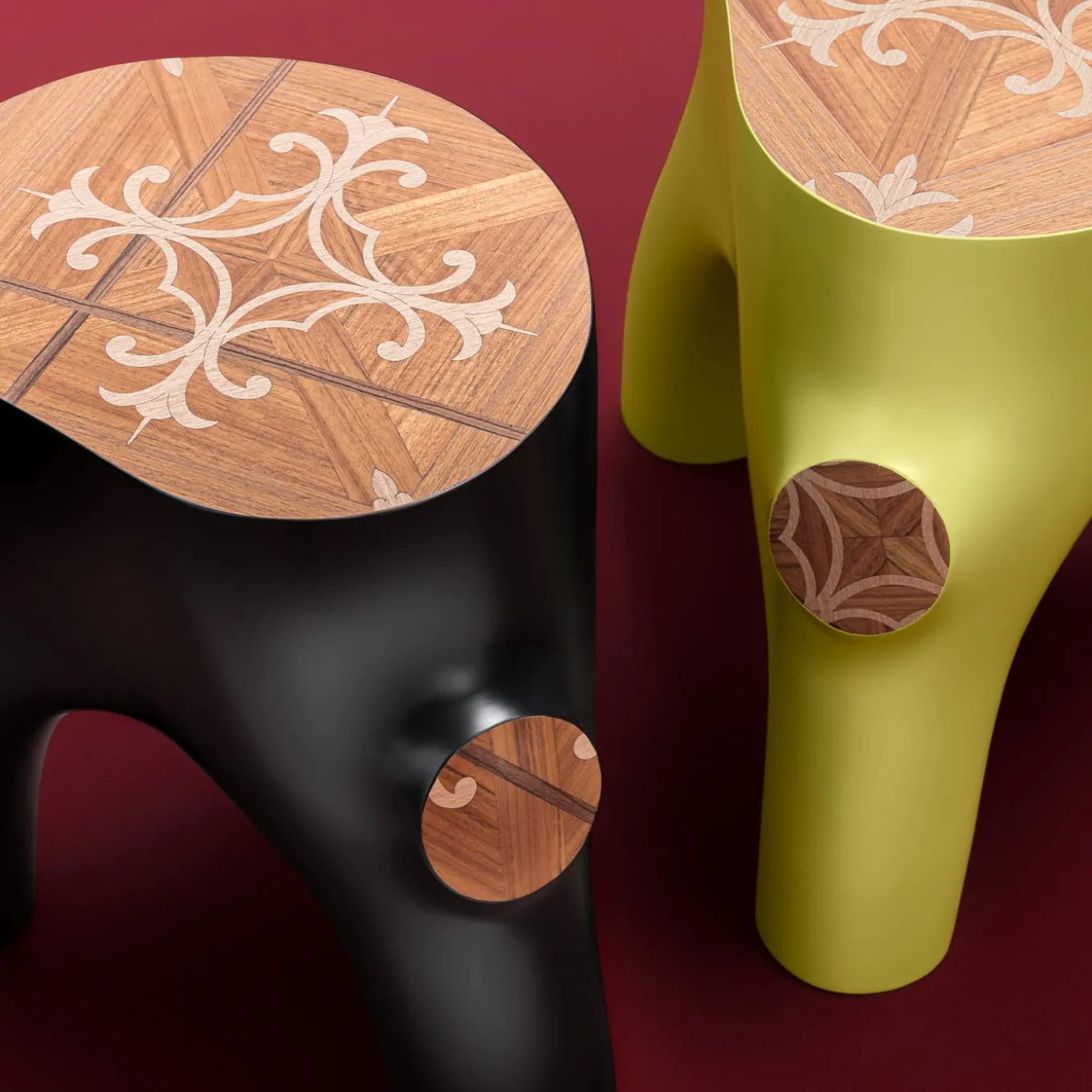 Questo tavolo d’accento, dal fascino scultoreo e dalla giocosa ispirazione organica, unisce antiche tecniche artigianali e sensibilità moderna. La base fresata a controllo numerico in poliuretano espanso e rifinita in giallo vibrante vanta una silhouette accattivante presa in prestito dai ceppi degli alberi, il cui design è arricchito da intriganti sezioni tagliate e ornate da motivi intarsiati in stile fiorentino, eseguiti combinando diversi tipi di legno. Chiedere al Concierge le varianti di colore.