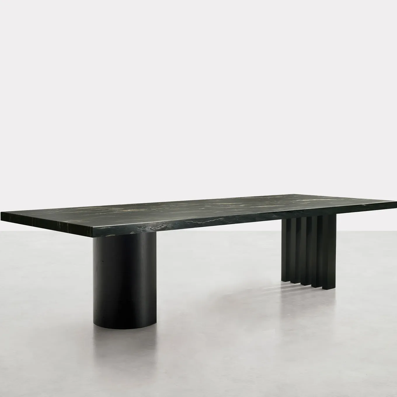 Ispirati allo splendido paesaggio degli Ozarks, questi tavoli, disponibili nelle versioni rettangolare e rotonda, catturano il contrasto tra alberi imponenti e laghi tranquilli. La base in compensato è impiallacciata in frassino nero con finitura opaca, mentre il piano è realizzato in marmo naturale spazzolato Belvedere con un’altezza di 6 cm. Il sottopiano in MDF aggiunge resistenza. Altre dimensioni, impiallacciature in legno, finiture laccate e opzioni in metallo puro sono disponibili su richiesta; chiedete al Concierge per ulteriori informazioni.