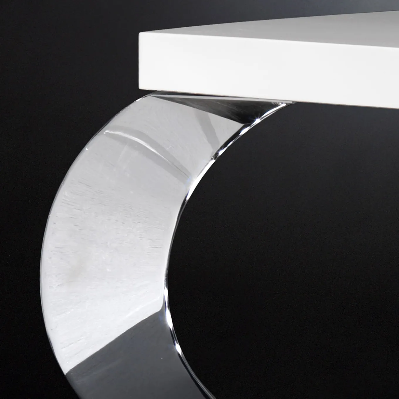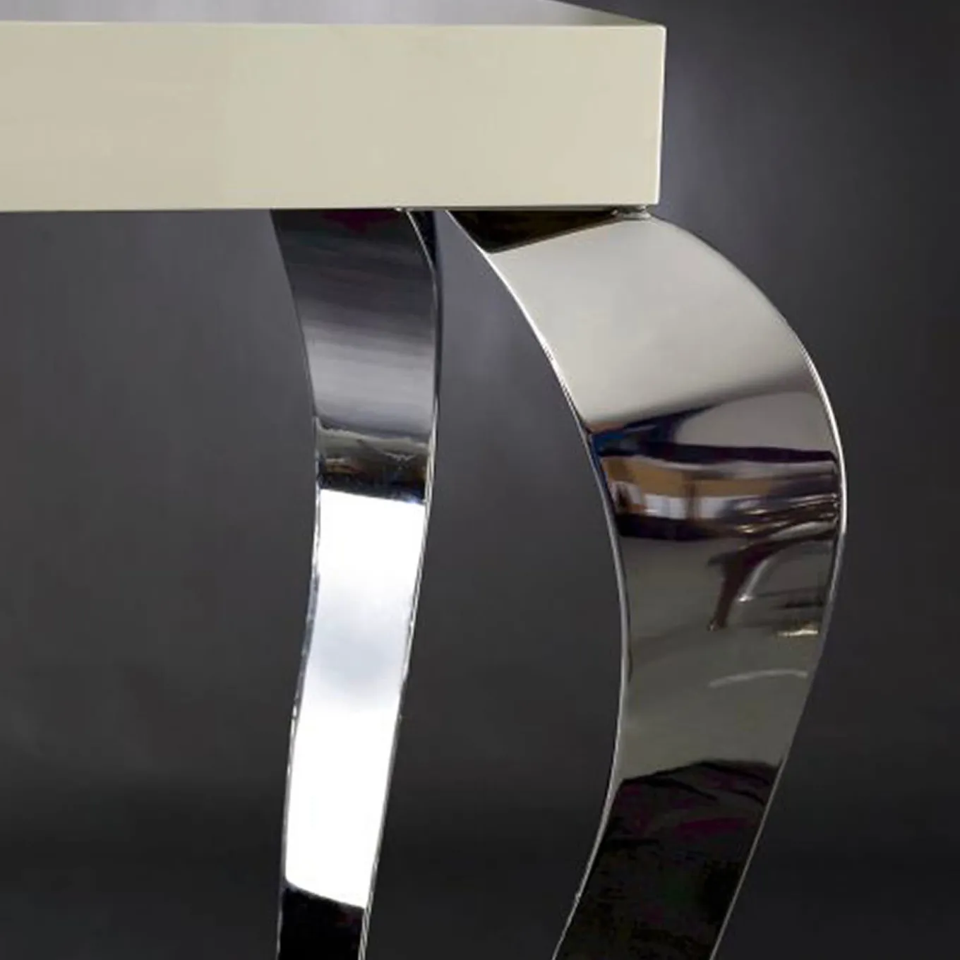 Riferimenti stilistici scultorei ed eclettici si fondono in questo superbo tavolo, che si impone senza sforzo in una sala da pranzo contemporanea o in uno studio artistico come scrivania. Lo spesso piano rettangolare in MDF laccato bianco lucido poggia su accattivanti gambe cabriole in metallo con una brillante finitura cromata. Nel catalogo Artemest sono disponibili più modelli della stessa serie, come eleganti consolle.
