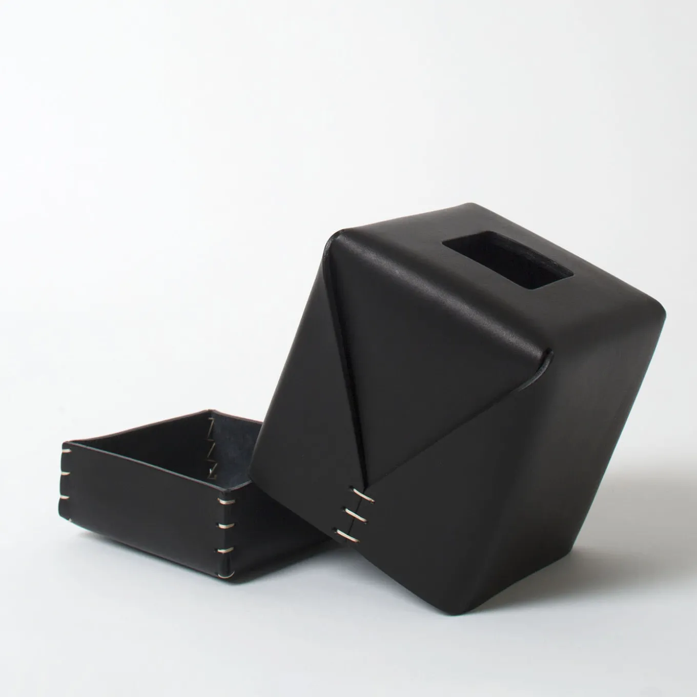 Accessorio esclusivo per completare un comodino o una scrivania, questo porta fazzoletti in stile contemporaneo sintetizza semplicità e lusso. Solo pochi tagli e pieghe definiscono la sua silhouette cubica ottenuta da un unico foglio di pelle nera perfezionato con cuciture manuali. Sono disponibili diverse varianti di colore e una versione rettangolare; per informazioni dettagliate, contattare il Concierge.