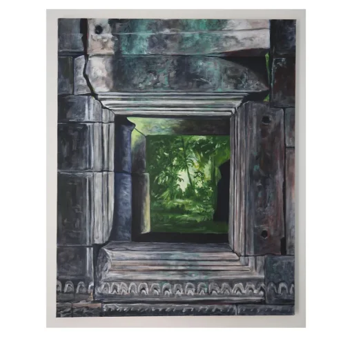 Affascinato dal fascino naturalistico e spirituale del complesso di templi di Angkor Wat in Cambogia, l’artista Nicola Torcoli ha catturato uno scorcio della giungla che circonda le rovine in questo superbo dipinto. Ricca di contrasti e caratterizzata da un uso magistrale della prospettiva, quest’opera è stata dipinta nel 2020 con colori acrilici.