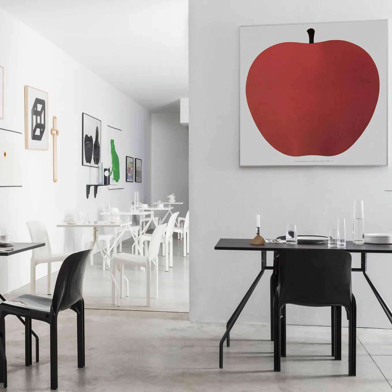 L’intento artistico di questa raffinata serigrafia è quello di sottolineare l’importanza del simbolo rispetto alla rappresentazione dettagliata di una singola e specifica immagine. Parte della Collezione Serie della Natura e priva di dettagli realistici, la mela rossa non smette di trasmettere concetti di succosità suggeriti dal suo abbondante profilo dipinto in rosso vivo.