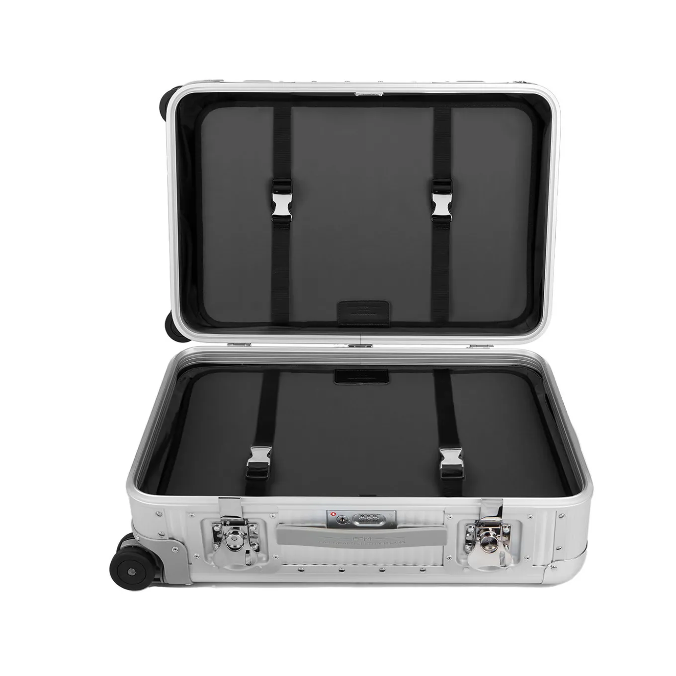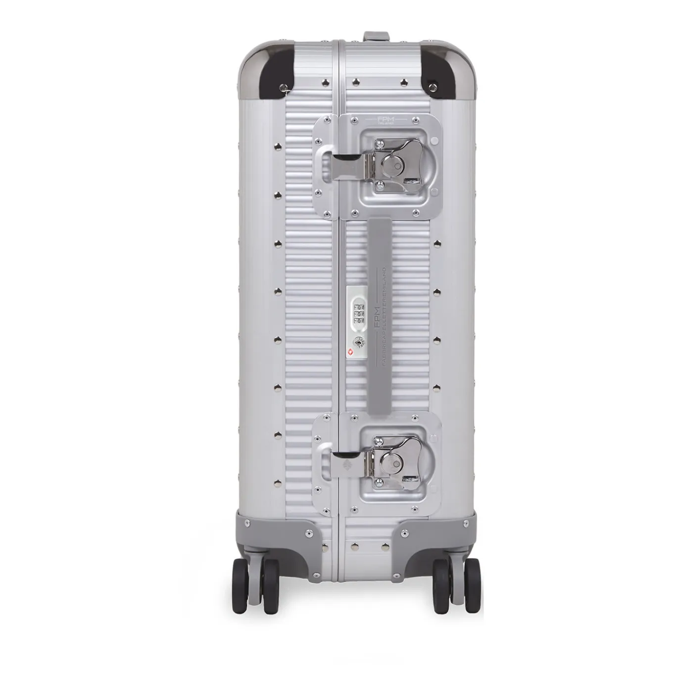 Bank S è una versione sportiva e dinamica della collezione Bank. Le maniglie scorrevoli, in materiale antiscivolo, assicurano un sollevamento agevole della valigia. La meticolosa attenzione ai dettagli interni, insieme ai gusci in alluminio, spessi 10 micron (?), e alla chiusura a farfalla conferiscono alla collezione l’inconfondibile stile Bank.