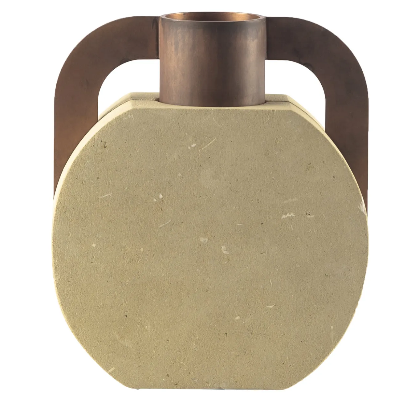 La componente in ferro di questo vaso unico, che conferisce carattere e profondità, è incisa e lavorata a mano. Recuperata da un passato lontano e rivisitata in chiave contemporanea, questa collezione di vasi in Pietra Leccese e ferro acidato racchiude il tema della riscoperta. Un incontro tra pietra e ferro, una connessione tra passato e presente, tra materia e forma.