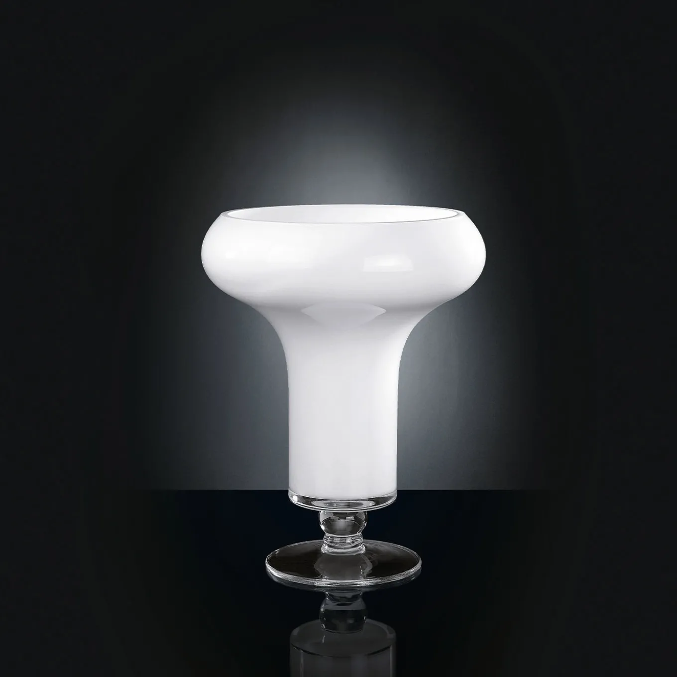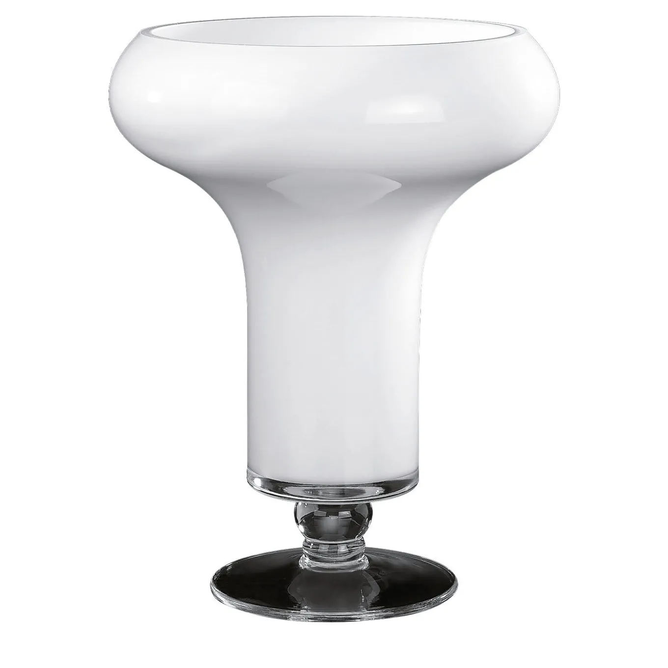 Questo vaso, che prende il nome dalla rinomata città ispiratrice della mitologia e della storia greca, vanta un fascino opulento e imponente che infonderà raffinatezza a qualsiasi interno. Superbamente lavorato a mano, è composto da una base rotonda in vetro trasparente con uno stelo corto, che sostiene un corpo capiente in vetro bianco opaco, che si allarga sinuosamente alla sommità.