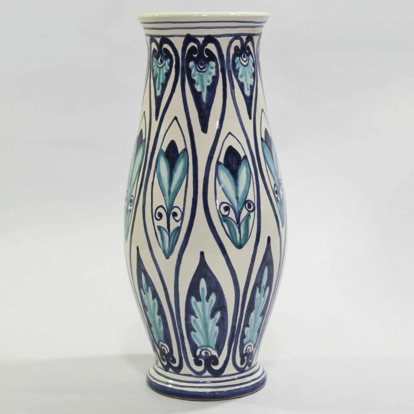 Superbo oggetto d’arte di ispirazione Decò, questo squisito vaso di Lorenza Adami per Sbigoli Terracotte è un omaggio ai disegni in ceramica del famoso nonno dei primi del Novecento. Con una silhouette sinuosa e graziosamente ricurva, con uno splendido motivo floreale antico in vibranti tonalità di blu e turchese, questo pezzo unico è interamente lavorato, smaltato e dipinto a mano secondo la tradizionale tecnica della maiolica fiorentina. Un pezzo notevole per spazi tradizionali o contemporanei, questo vaso è personalizzabile in diverse tonalità di colore; per ulteriori informazioni, contattare il Concierge.