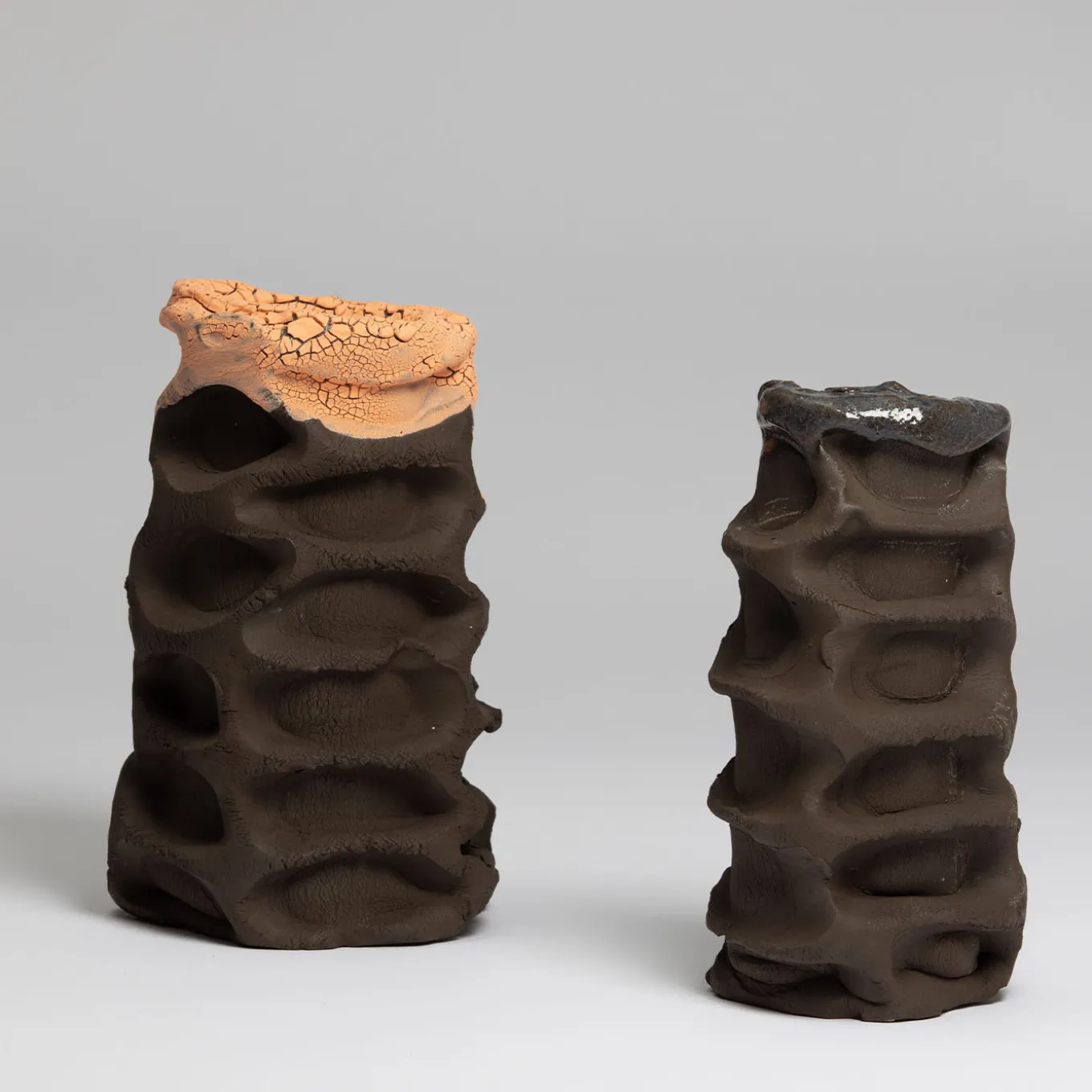 Questo vaso decorativo racchiude un’interazione unica tra natura e arte, traendo ispirazione dagli aspri paesaggi vulcanici. Il suo design riflette gli ambienti in cui la vita lotta per prosperare, segnati dalla delicata collaborazione tra i licheni resistenti e l’elemento spoglio delle rocce. Realizzato in gres di alta qualità con chamotte, questo vaso possiede una texture ruvida completata da una smaltatura interna che presenta un sorprendente effetto crepitante. Questa combinazione di materiali non solo ne esalta il fascino visivo, ma crea anche una giustapposizione tra superfici porose e smaltate, mettendo in evidenza la forza del mezzo. Ideale per ambienti che fondono arte e design, funge da accattivante punto focale, perfetto per spazi adornati che cercano un tocco di raffinatezza e carattere unico. Pezzo unico.