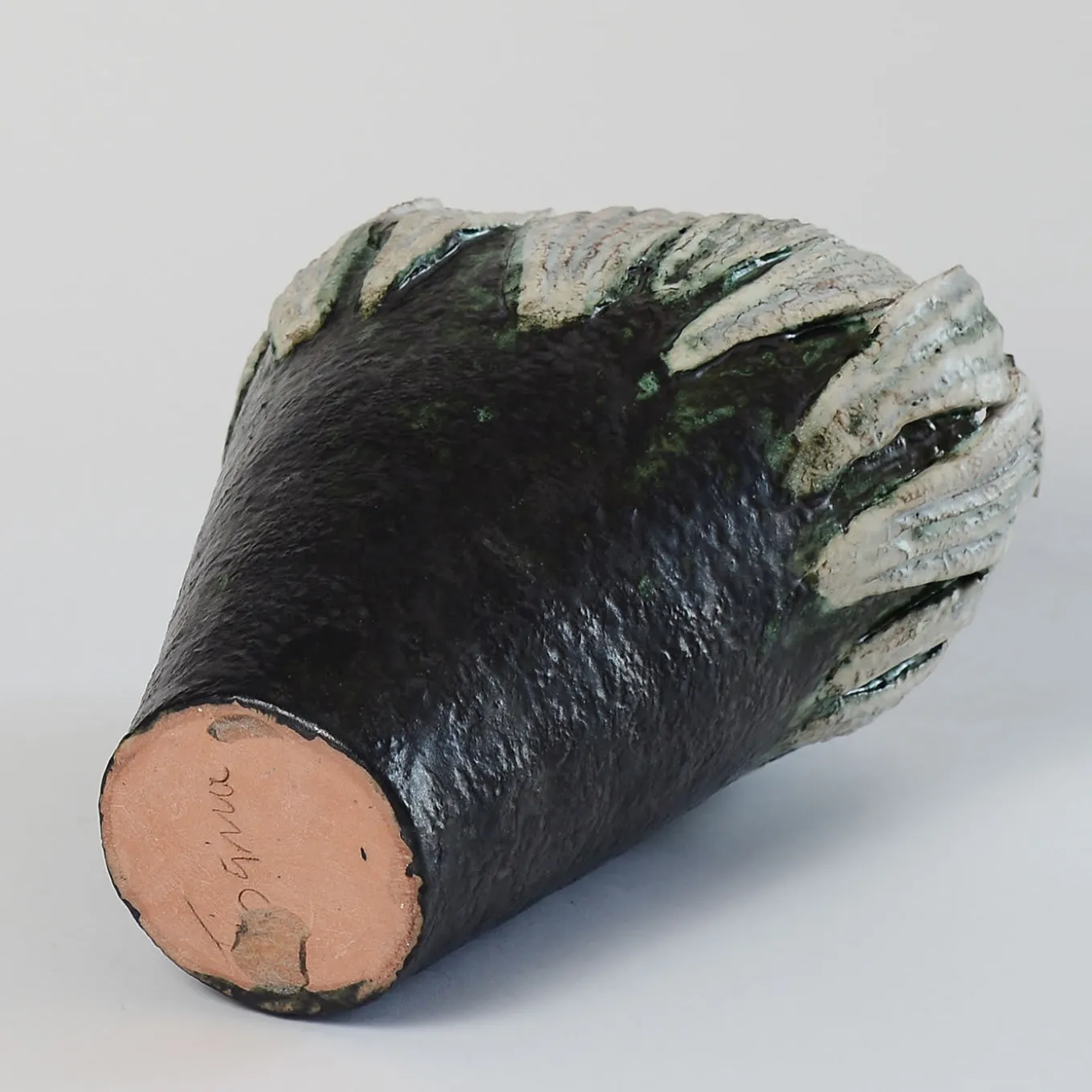 Questo vaso ovale di grande effetto, che ricorda un fiore sbocciato, è stato realizzato a mano in terracotta con la tecnica dell’arrotolamento e ricoperto di ricchi smalti e ossidi. A causa della sua natura artigianale, le riproduzioni di questo pezzo saranno simili ma non identiche.