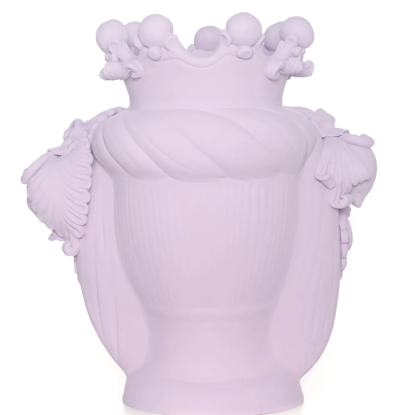 Questo vaso antropomorfo è realizzato interamente a mano e dipinto in una tinta monocromatica opaca rosa antico, ricca di pigmenti naturali e leganti resinosi che conferiscono un’intensa profondità cromatica. Solo gli occhi sono smaltati per farli risaltare, enfatizzando la bellezza dello sguardo. Il pezzo si ispira alle antiche leggende siciliane di amore e vendetta tra un moro e una fanciulla. Il vaso non può essere riempito d’acqua.