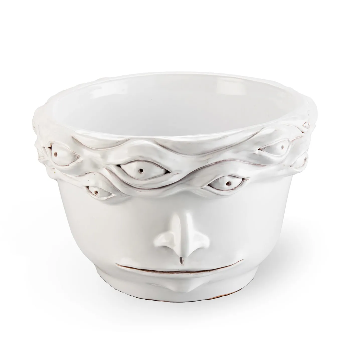 Questo vaso Eye Freaklab è realizzato interamente a mano con la tecnica del tornio e della modellazione. Partendo dall’argilla, il pezzo viene essiccato e cotto in forno, quindi decorato con smalti atossici, colori e cristalli per ceramica. Ogni pezzo è unico e completamente fatto a mano. Può essere utilizzato come portafiori, portapiante o come scultura. Il pezzo può essere personalizzato, si prega di contattare il Concierge per ulteriori informazioni e opzioni.