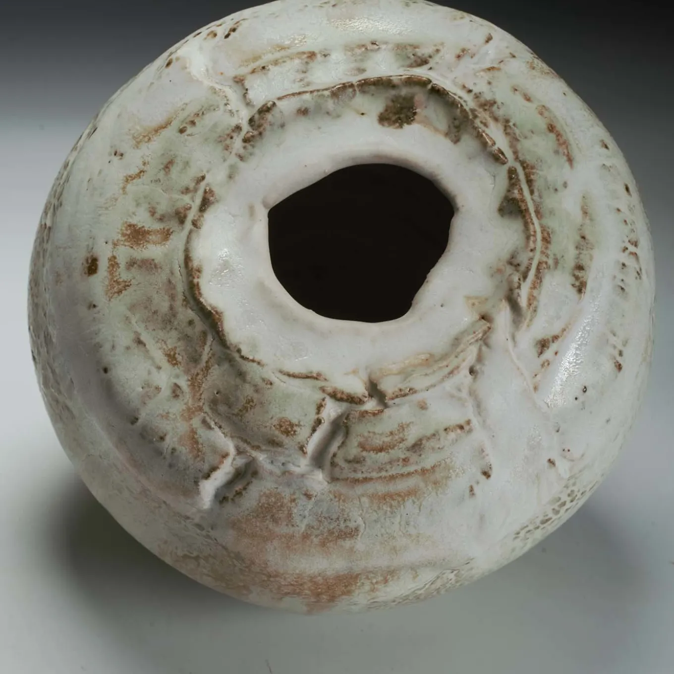 Evocativo dei paesaggi ipnotici dei ghiacciai sciolti sulle formazioni terrestri, questo vaso unico è realizzato interamente a mano utilizzando tecniche tradizionali e innovative sviluppate dall’artista nel corso degli anni. Realizzato a mano su una ruota con una forma a bocciolo irregolare, utilizzando una speciale miscela di argille per gres ad alta temperatura, l’esclusiva superficie “ice scape” di questo vaso viene creata durante la seconda cottura a 1300°C in un forno a riduzione di ossigeno.