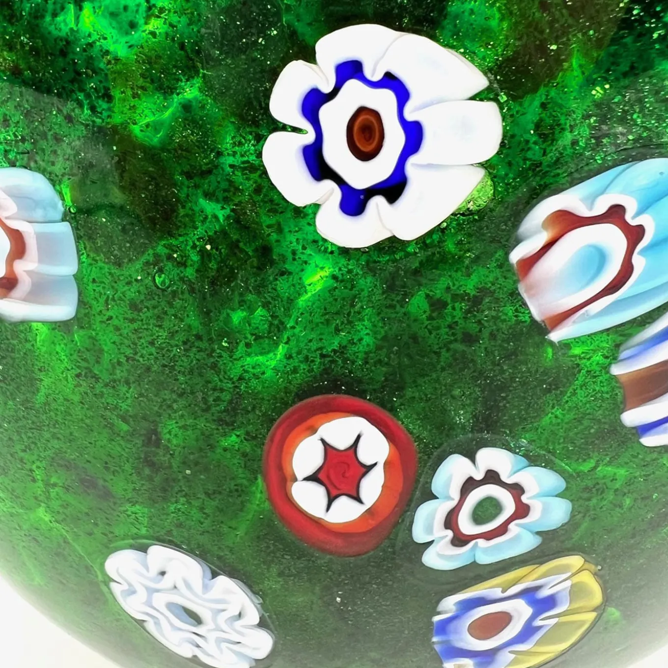 Con un’accattivante e ipnotizzante tonalità di verde bosco, questo stupendo vaso è abilmente realizzato a mano in vetro di Murano, arricchito da preziose murrine che ne decorano la superficie elegante e singolare. La sua forma sinuosa esalta l’unicità di questo pezzo. Viene fornito con un certificato di autenticità. Per ulteriori informazioni, consultare il Concierge.