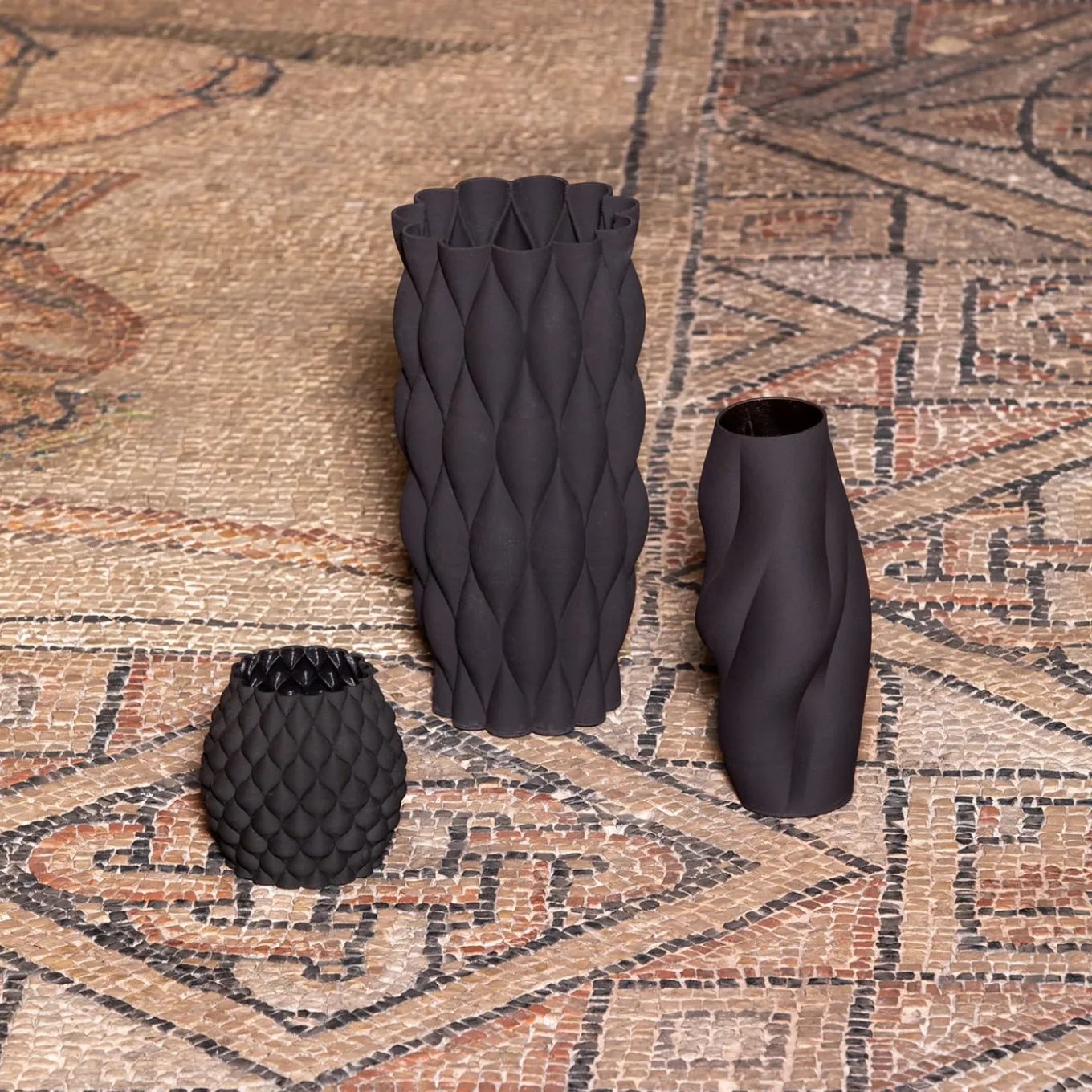 Il vaso New Delhi Black fa parte della collezione di vasi Mitti presentata alla Milano Design Week Fuorisalone 2021, ispirata a un viaggio in India. Il suo design reinterpreta le texture ispirate alle dune di sabbia, con un esterno grezzo dal tocco tessile che contrasta con uno smalto interno trasparente che garantisce l’impermeabilità. Il pezzo fonde l’artigianato del gres con la tecnologia di stampa 3D, creando variazioni uniche in ogni vaso che ne arricchiscono la profondità visiva e l’interazione con la luce.