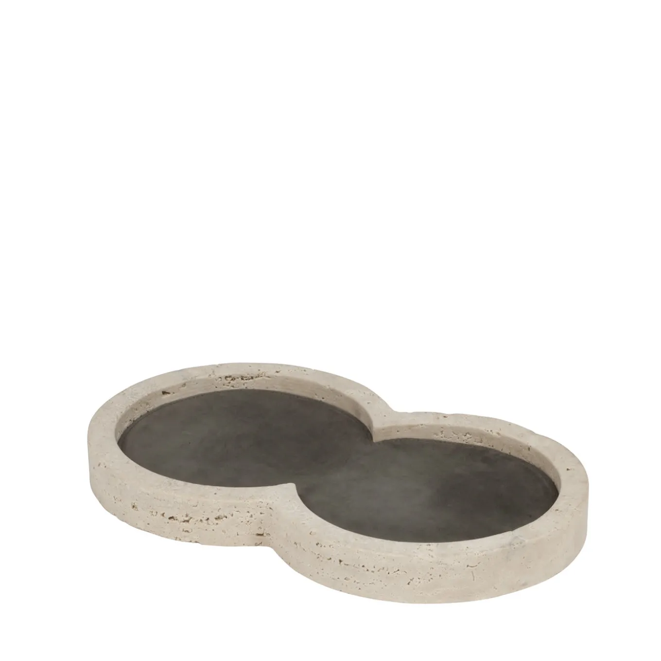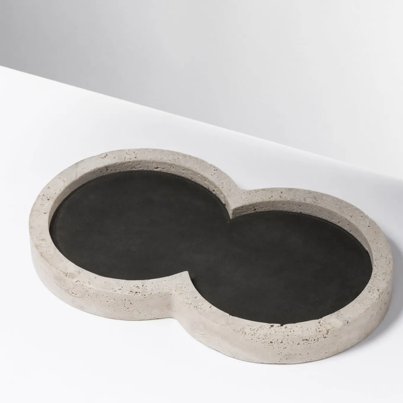 Questo vassoio per camerieri colpisce per la sua semplicità ed è un complemento sofisticato per l’ingresso. L’originale silhouette a forma di otto è realizzata interamente in travertino color crema, una pregiata pietra italiana. La struttura è rivestita in nappa nera, un materiale morbido che invecchia in modo sorprendente con il tempo. Il contrasto di forme e materiali crea una composizione armoniosa. Regalato o inserito in una collezione personale, questo vassoio aggiungerà un tocco di sofisticata eleganza a qualsiasi casa.