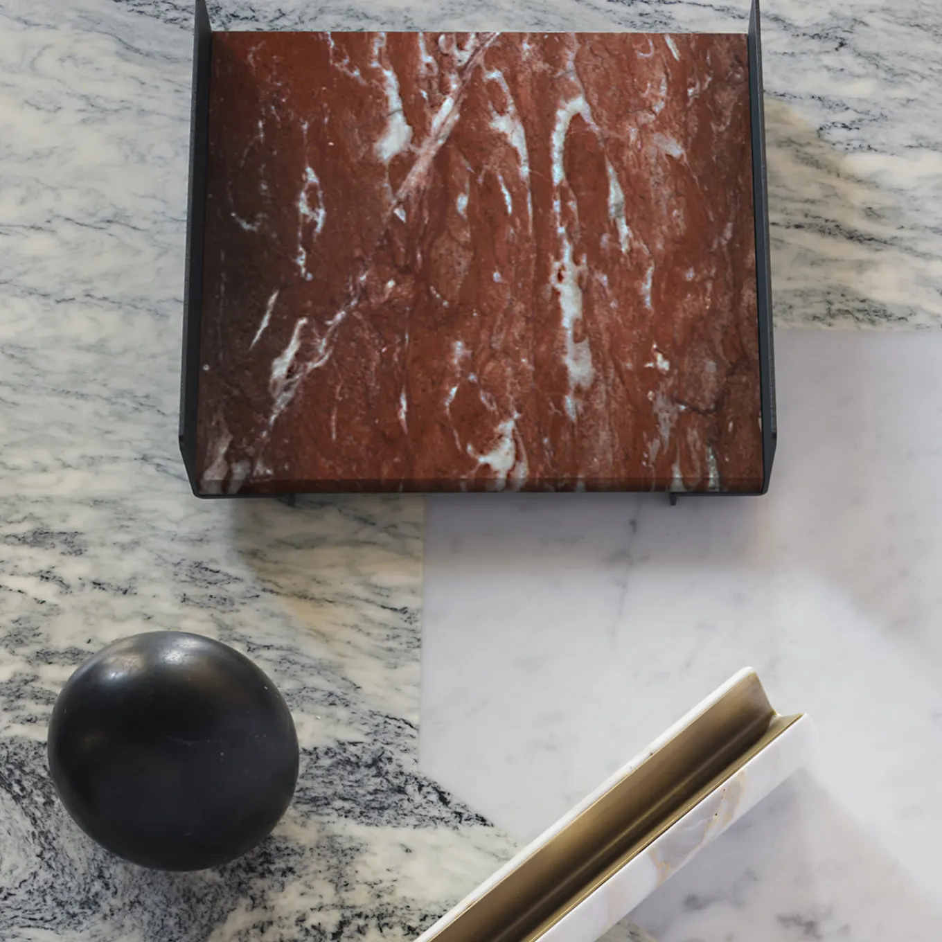 Il vassoio Pietra L03 è realizzato in marmo rosso Francia. Ogni lato è affiancato da staffe in ferro grigio canna di fucile per un tocco moderno e una funzionalità eccezionale. Questo vassoio in pietra naturale, che emana una semplice eleganza, è un complemento raffinato per un’ampia gamma di spazi: perfetto per la scrivania, il piano di lavoro della cucina o il tavolino da caffè.