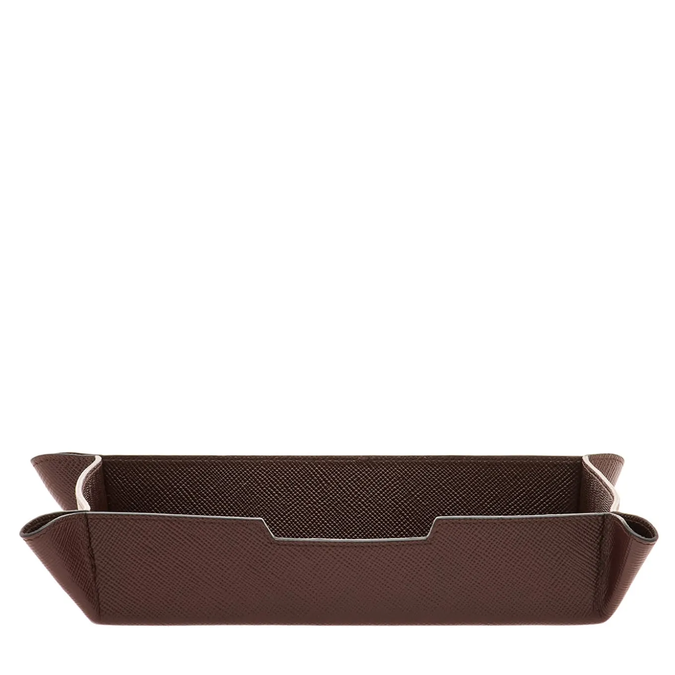 Combinando lusso sobrio e versatilità, questo vassoio in pelle marrone è ideale per contenere chiavi, orologi e altri piccoli oggetti di uso quotidiano. Il design flessibile ma strutturato è caratterizzato da angoli sapientemente cuciti, che riflettono la cura artigianale e l’attenzione ai dettagli. La superficie liscia in pelle dona un tocco di raffinatezza a qualsiasi ingresso, comodino o scrivania. Un pezzo d’accento pratico ed elegante che si adatta a spazi formali e rilassati.