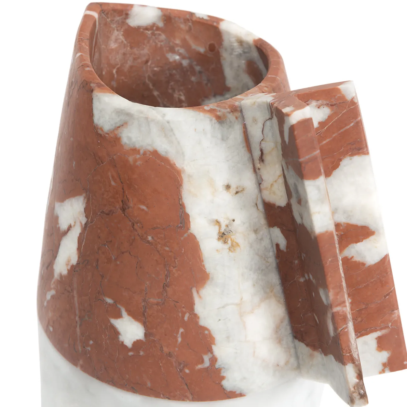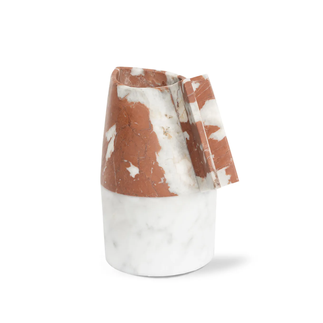 Un’audace unione di sensibilità estetica moderna e materiali artigianali tradizionali, questa raffinata caraffa servirà elegantemente le bevande in qualsiasi occasione formale o informale. Questo pezzo è stato disegnato da Patricia Urquiola e interamente realizzato a mano da abili artigiani italiani. La forma geometrica non convenzionale e la combinazione di marmi bianchi e rossi, con le sue inclusioni bianche e le sottili venature grigie, si traduce in un’opera accattivante di arredamento funzionale che eleva l’arte di qualsiasi cucina o sala da pranzo.