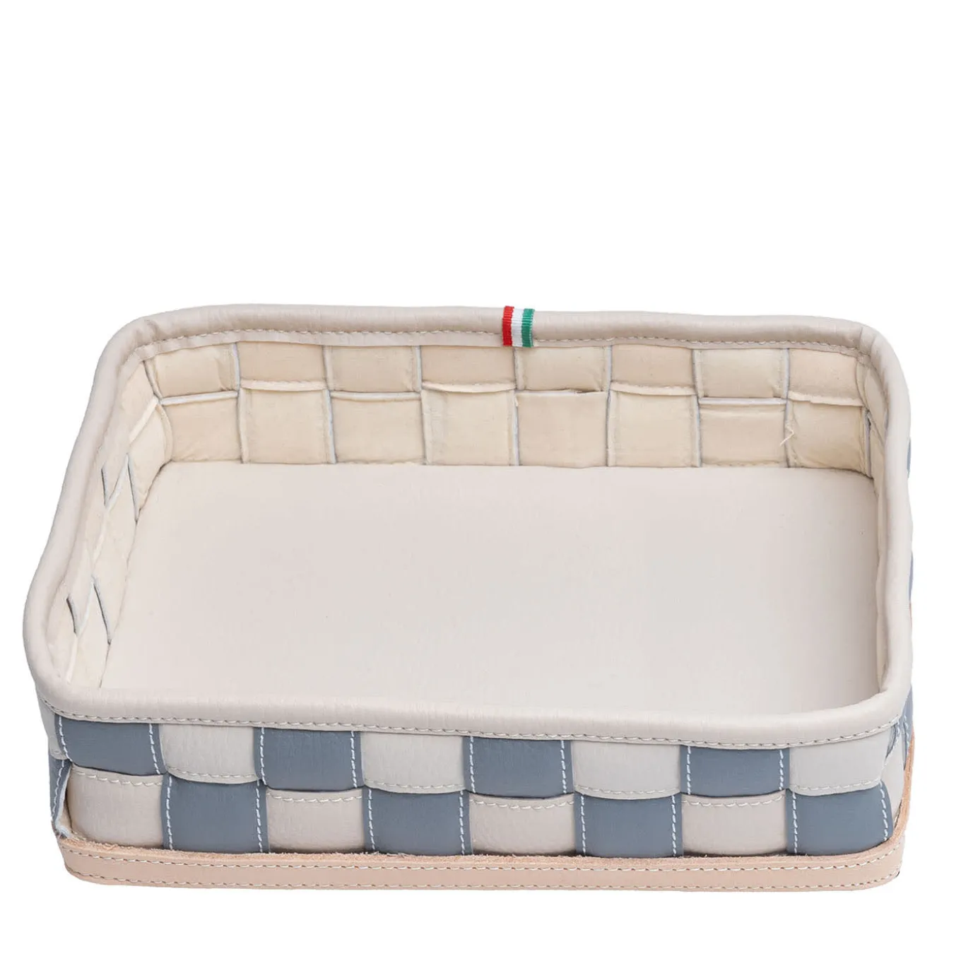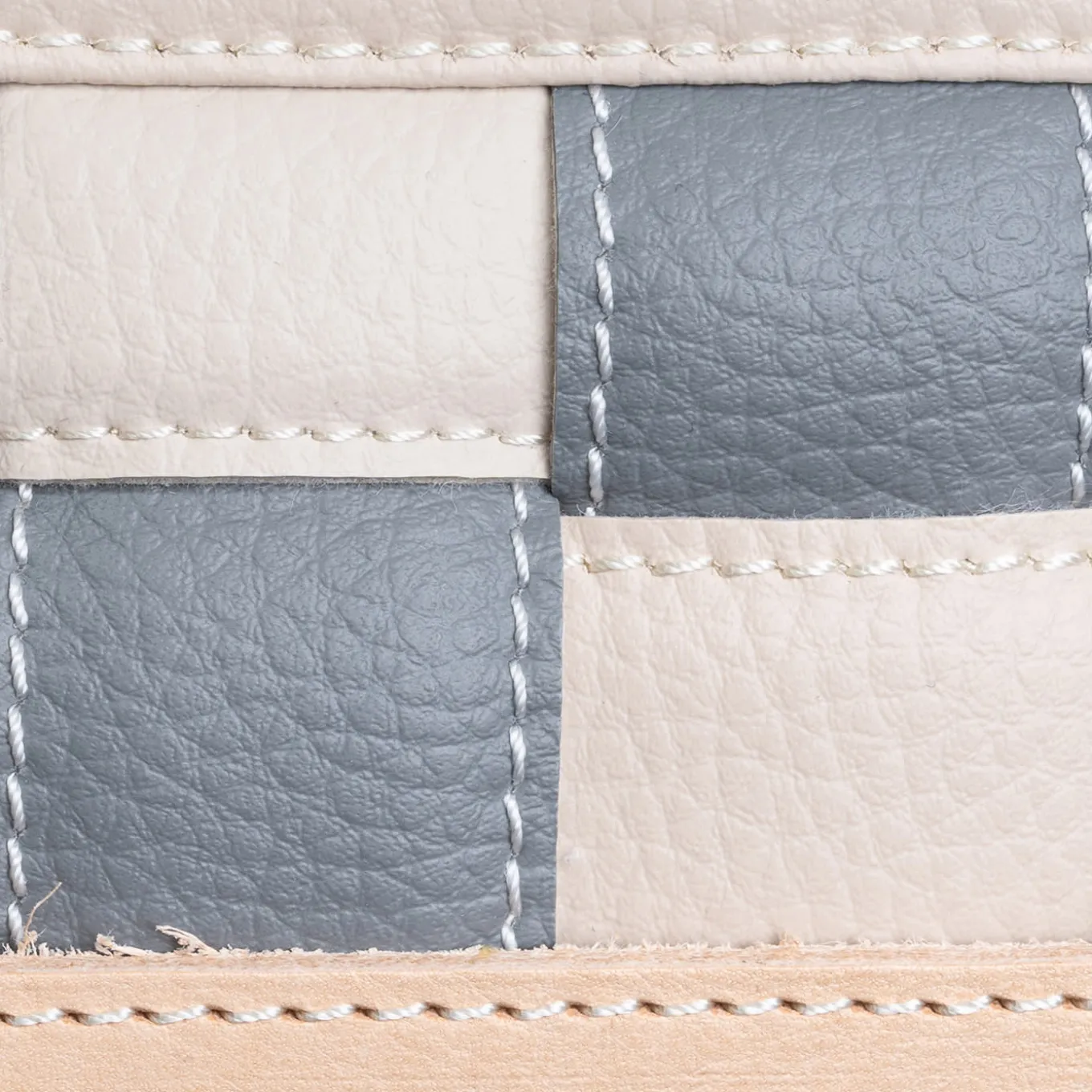 La freschezza di una combinazione di colori grigio e crema incontra il fascino del design sartoriale in questo esclusivo videopoche, un complemento perfetto per le consolle d’ingresso per raccogliere chiavi e monete. Ottenuto dalla paziente annodatura di bande in ecopelle, il suo aspetto a quadri richiede semplicemente attenzione, mentre la piacevole sensazione tattile è dovuta alla texture intrecciata. L’impeccabile stabilità è assicurata dal fondo rigido interno.