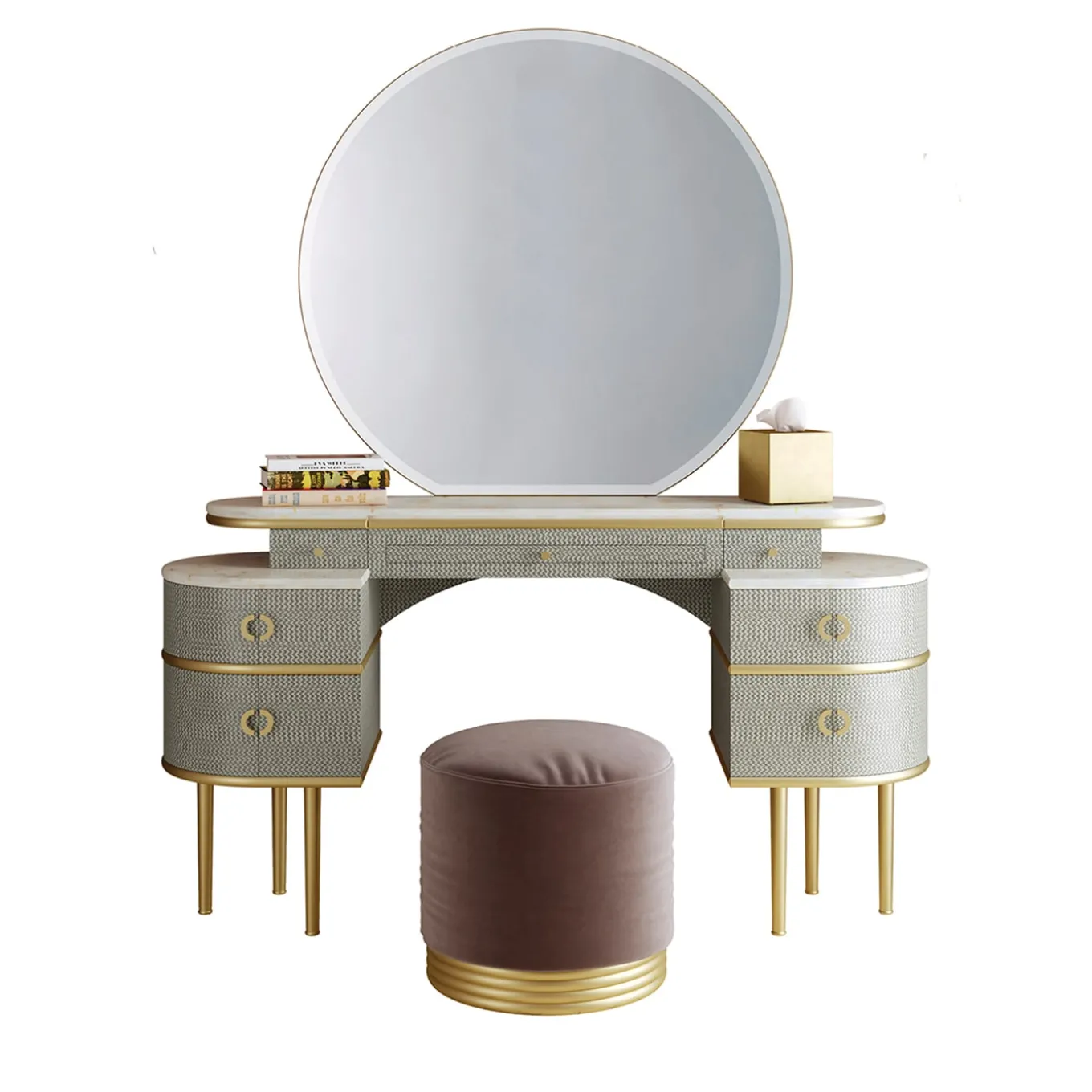 È un omaggio alla femminilità non convenzionale e al carisma irresistibile della moglie e musa dell’autore de “Il Grande Gatsby”, questo mobile da trucco che reinterpreta in chiave contemporanea la classica toelètta da camera. Definito da linee sinuose e forme stondate, che culminano nell’ampia circonferenza del grande specchio diamantato, ha ante e cassetti in legno laccato disponibili in differenti colori, gambe in ottone e piano in marmo. Tra i due cassettini, un vassoio estraibile rivestito di velluto.