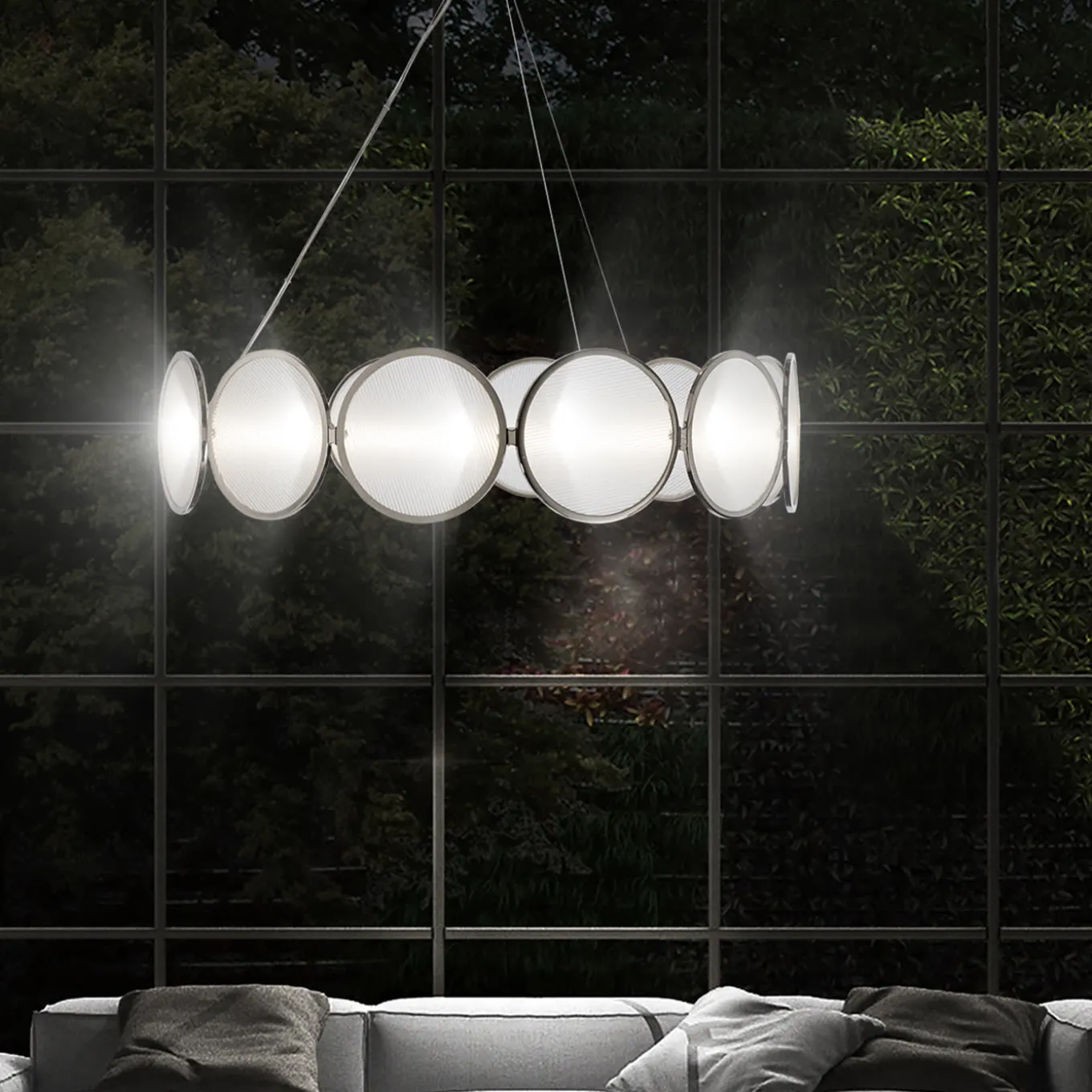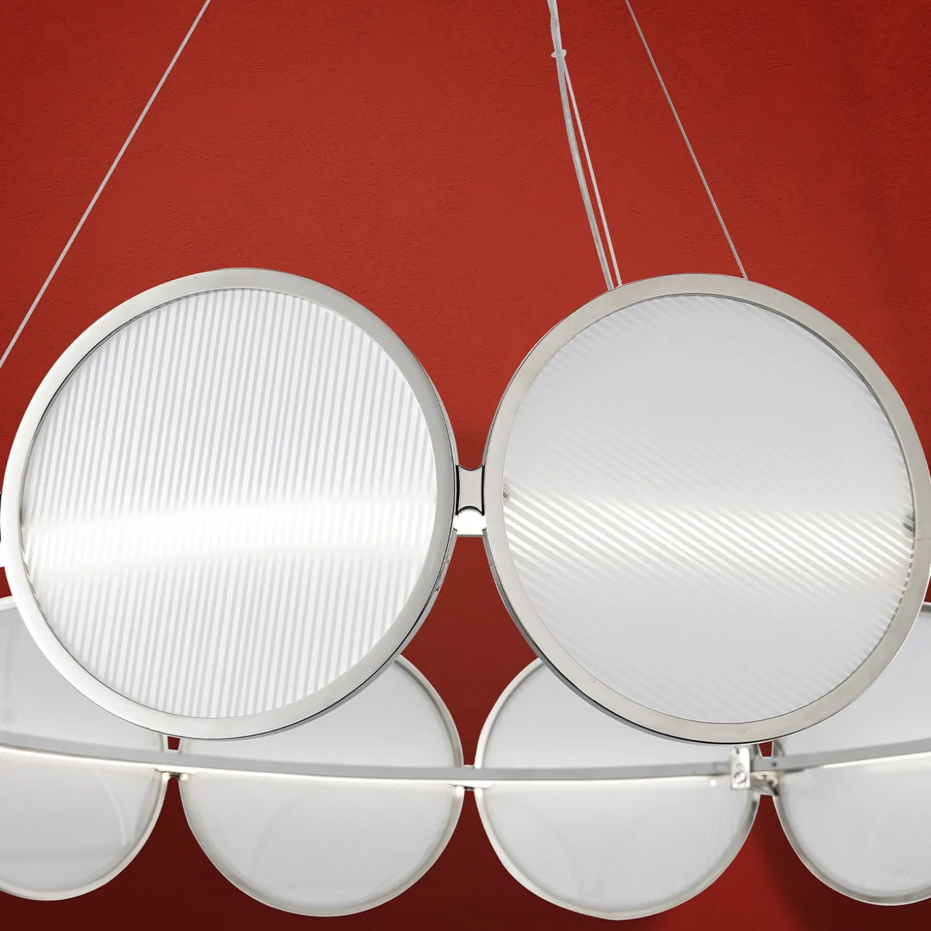 Il minimalismo nelle forme e la leggerezza del design. Sospesa in aria quasi per magia, questa lampada combina design con raffinatezza tecnica. La versione per gli Stati Uniti presenta un ulteriore piatto rotondo nella stessa finitura del resto della struttura con un diametro di 12 cm (4,72”) per coprire il j-box. Dimmerabile su richiesta.