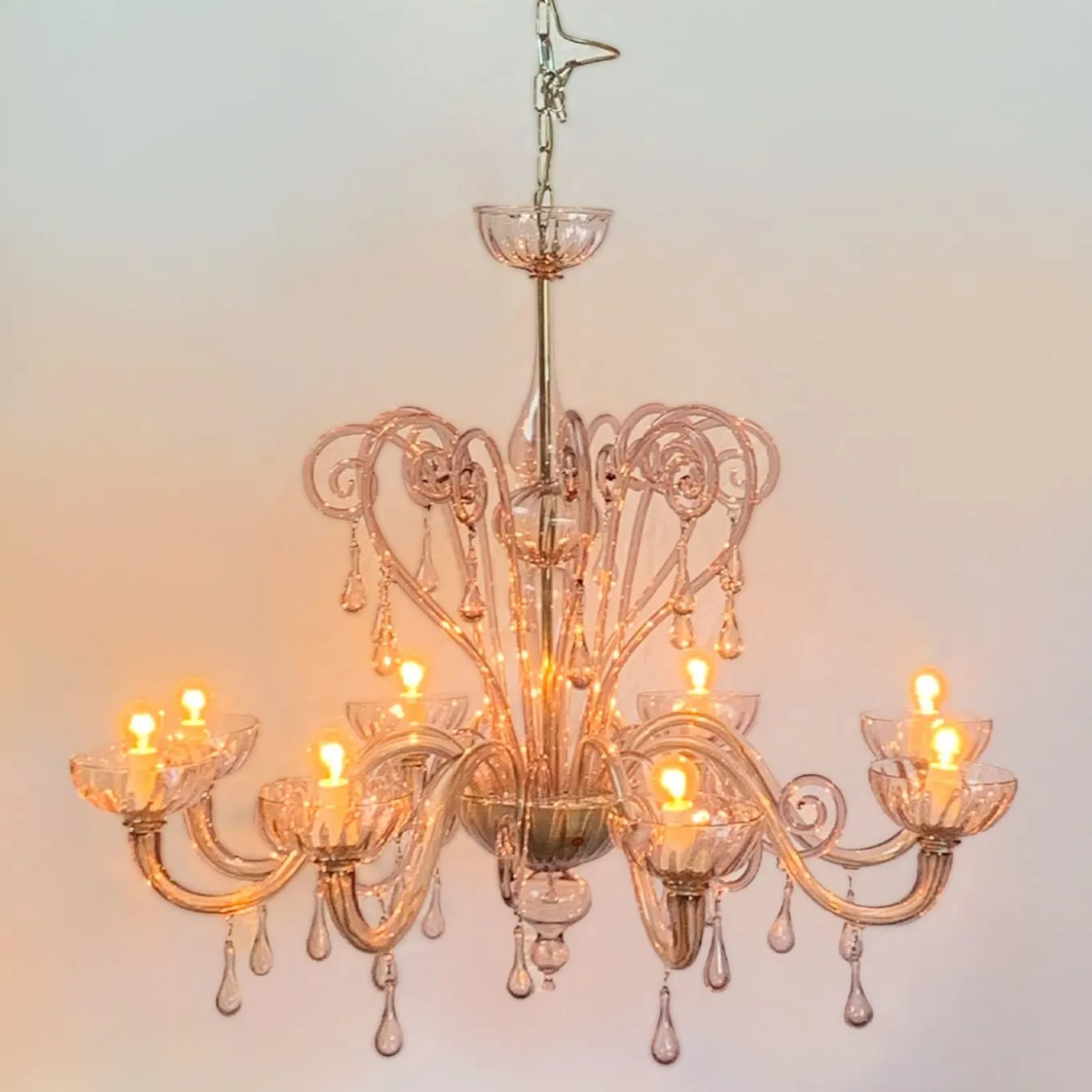 90s Lampadario a 8 bracci in vetro di Murano di Cesare Toso