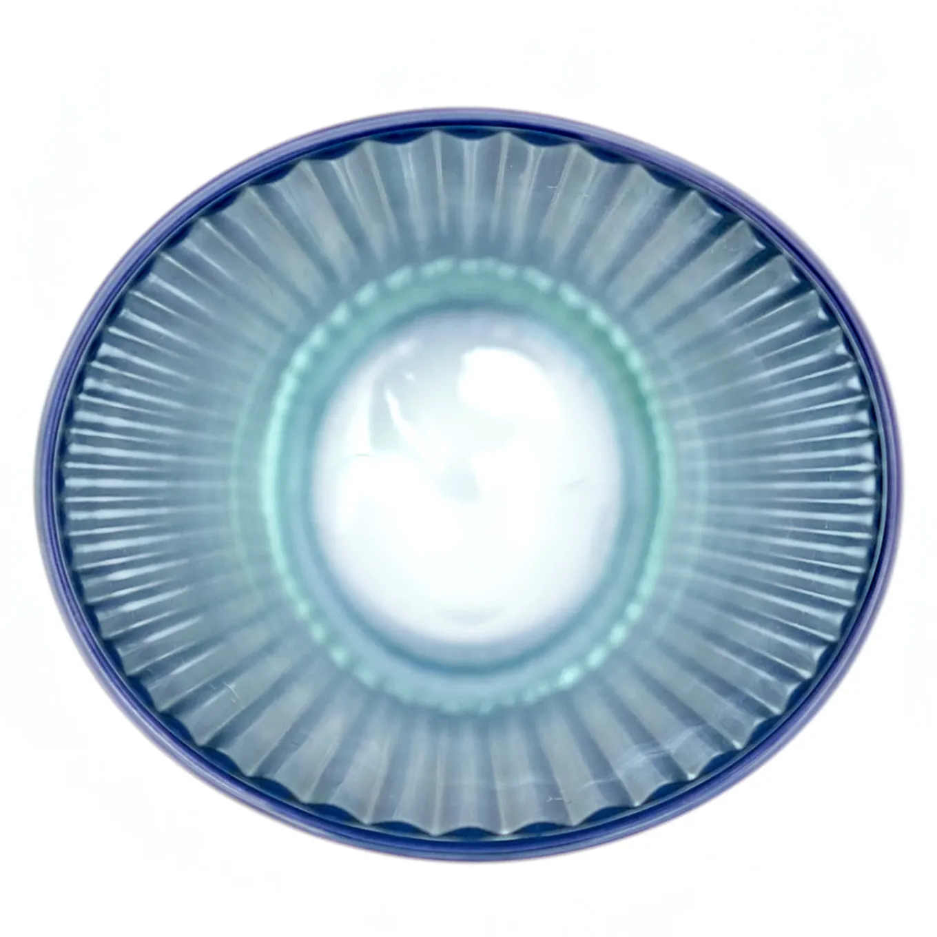 Questa elegante alzata per dolci infonderà un fascino magico in un ambiente contemporaneo monocromatico. Il suo corpo in vetro comprende uno stelo chiaro che si erge da una base pieghettata ed è collegato al vassoio piatto e scanalato, entrambi accomunati da una sofisticata tonalità di blu ravvivata da una lusinghiera finitura iridescente.