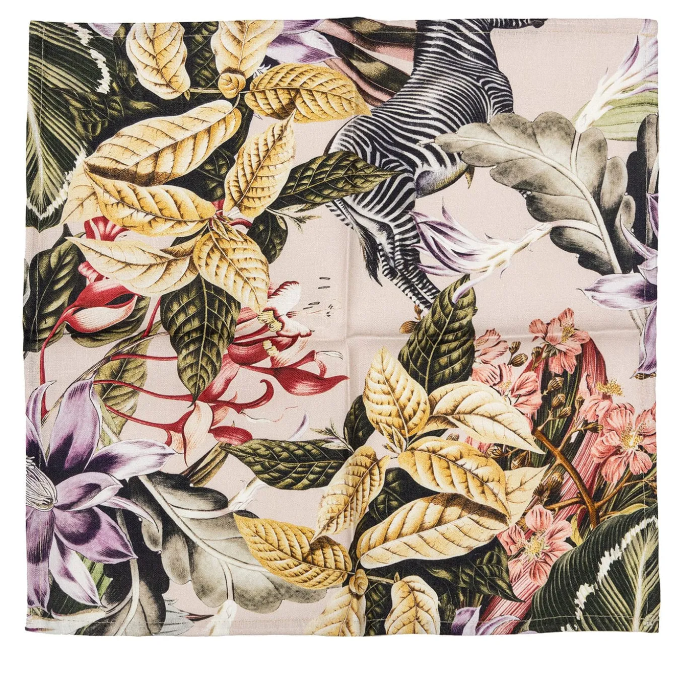 Ispirato al mondo degli animali esotici, questo set di sei tovaglioli diversi è composto da un fitto intreccio di foglie e fiori tropicali da cui fanno capolino vari animali tra cui koala, giraffe e ghepardi. Un design unico e d’impatto, perfetto per ogni situazione.