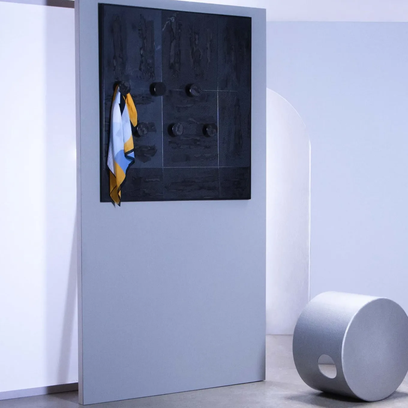 Questo appendiabiti elegante e unico fa parte della collezione Sorry Jannis, un omaggio al lavoro di Jannis Kounellis e direttamente ispirato all’Arte Povera. Interpretazione contemporanea di questo movimento d’arte moderna, questo splendido oggetto è funzionale ma anche una sorprendente decorazione da parete. È composto da diversi pannelli realizzati con un materiale sviluppato in esclusiva da Frisoli: il Frisoli Lachesi, in cui il grigio intenso della fibra di carbonio si mescola alla tonalità azzurra della fibra di vetro. Su questo mix viene versato materiale aerospaziale, creando un effetto unico che contraddistingue ogni pannello.