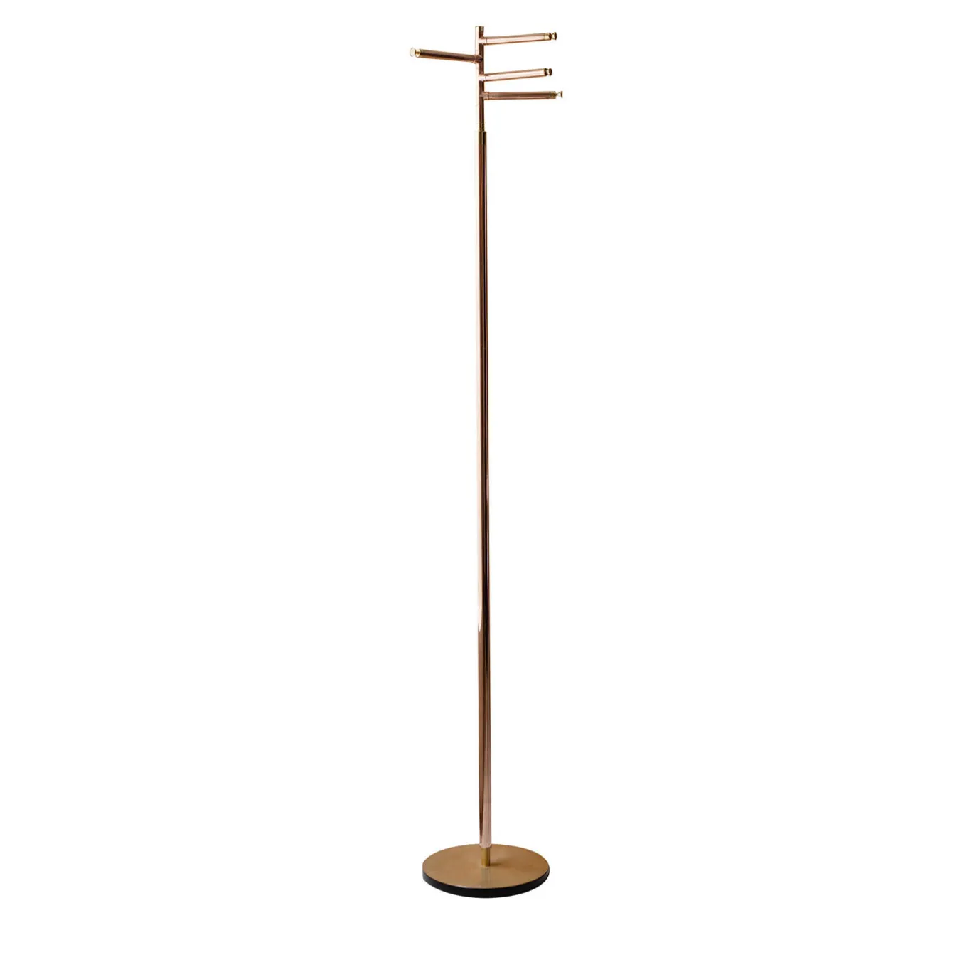 Appendiabiti a piantana costituito da una base rivestita in ottone da cui si stacca un’asta in rame. Nella parte superiore, i rami ruotano in qualsiasi direzione per la massima fruibilità.