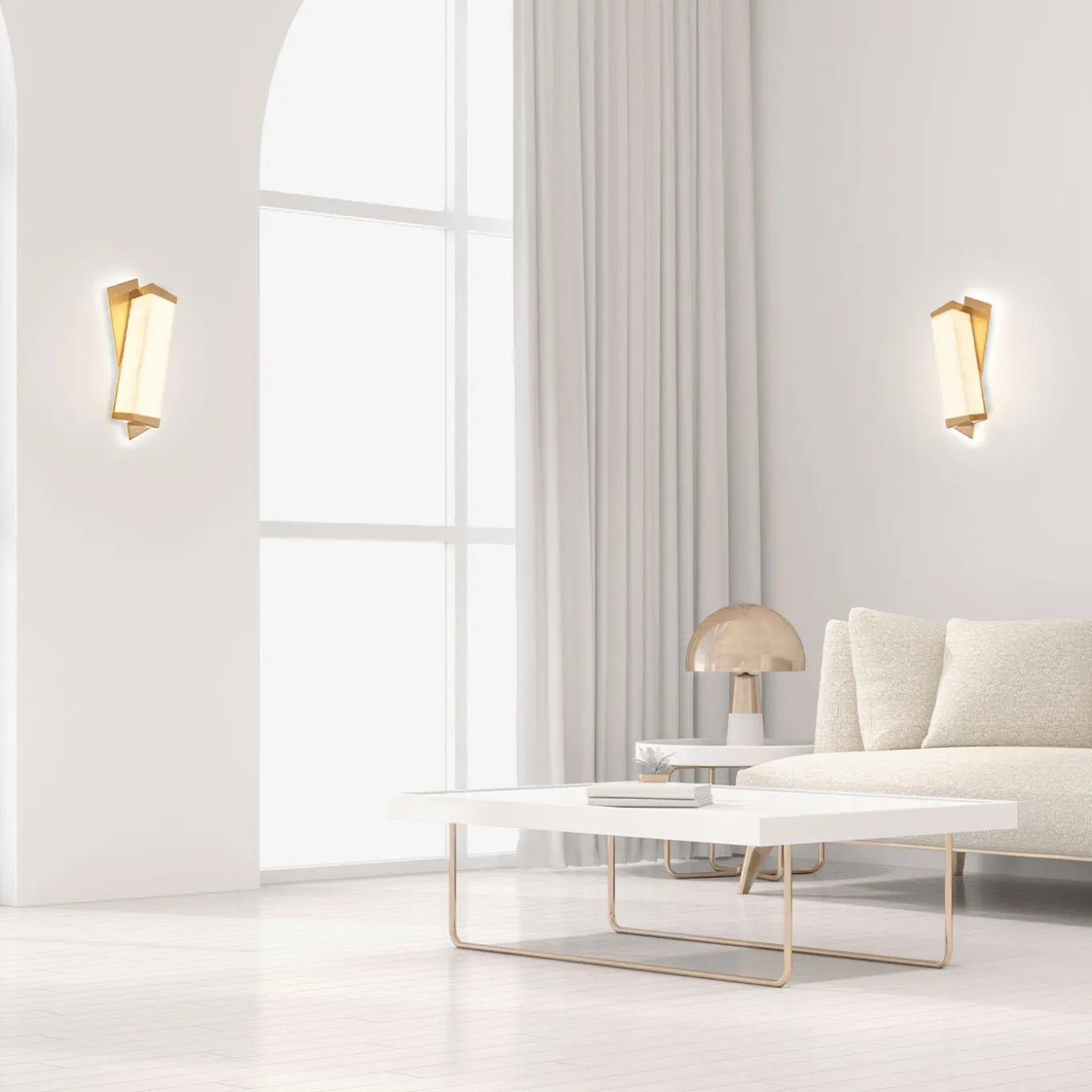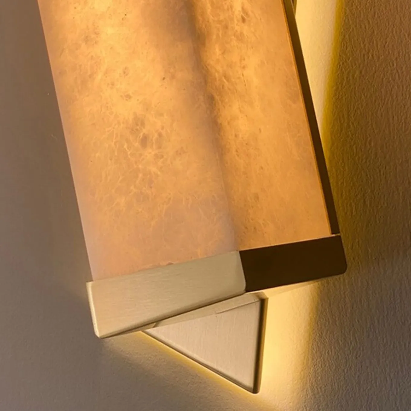 Lampada da parete Offset, dal sapore anni ’30 sottolineato dal diffusore in alabastro e dalle forme geometriche decise. La retroilluminazione a led sulla parete e la luce calda diffusa dall’alabastro rendono questa lampada di forte impatto sulla parete.