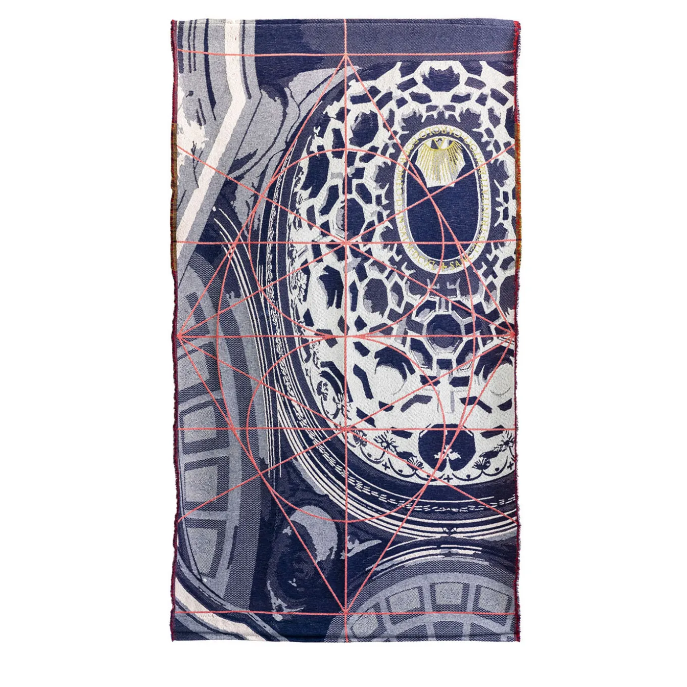 Elegante, moderno e versatile, l’arazzo bifacciale Borromini in blu petrolio e Neues Rot elettrizza l’essenza dell’architettura barocca. Realizzato in lino e cotone frisé con la tecnica Jacquard, è più di un tessuto: è una collisione di epoche. Il blu profondo e pensoso è interrotto da nitide linee rosse, creando un impulso di energia che reimmagina la cupola del Borromini in forma astratta.