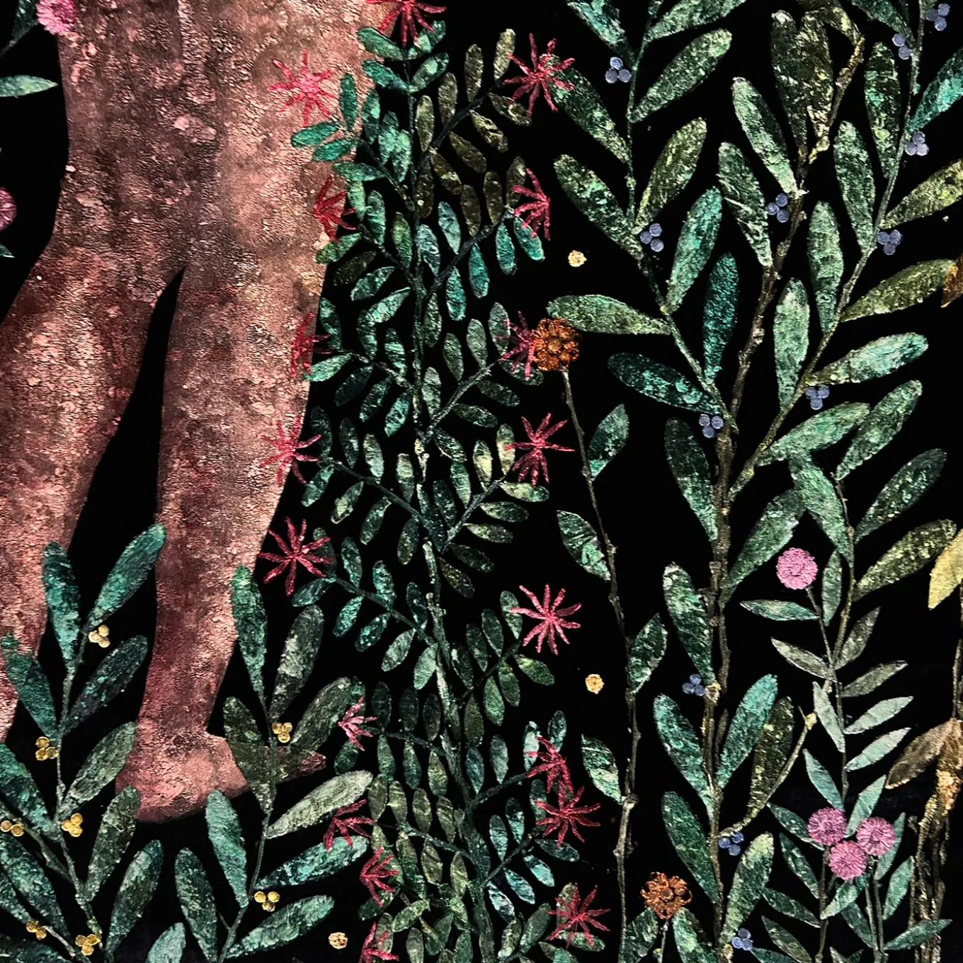 L’arazzo Florae Incantata Lemon Tree Velvet presenta una suggestiva rappresentazione della bellezza femminile intrecciata alla vitalità della natura, su uno sfondo di velluto nero profondo. Caratterizzato da una figura femminile di ispirazione mitologica in mezzo a un fogliame vibrante, rami di limone ed elementi di vite, questo arazzo impiega una tecnica veneziana unica con paste colorate per un effetto tridimensionale. Accenti di foglia d’oro introducono riflessi luminosi, esaltando il gioco dinamico di luce e texture dell’arazzo, mentre le ricche tonalità di smeraldo e giallo danno vita alla composizione.