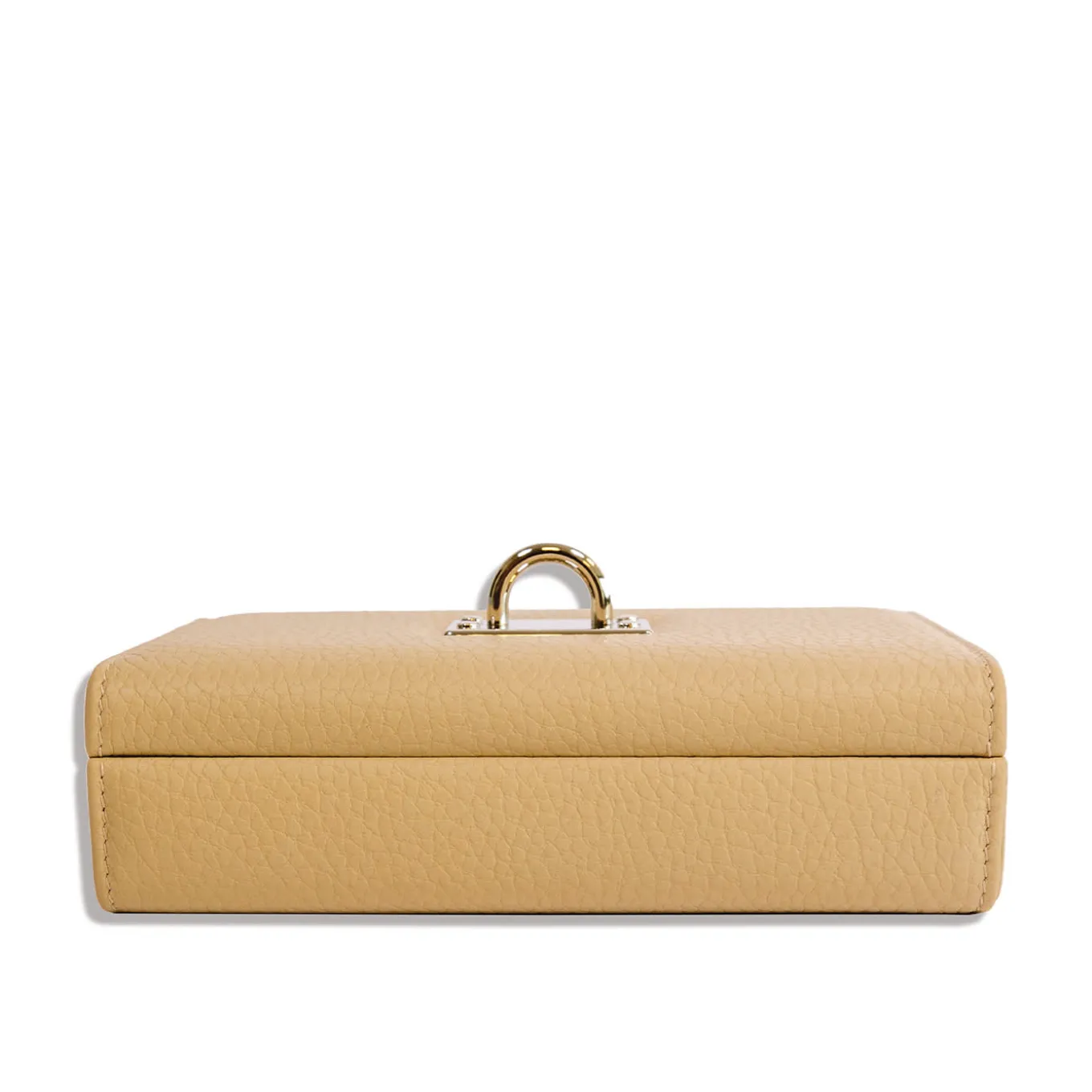 Con una squisita tonalità bianco crema dall’allure accattivante, questo portagioie è rivestito in pelle pieno fiore di alta qualità. Realizzato in legno e con preziosi dettagli in metallo, è rivestito internamente in microfibra, per garantire sicurezza e comfort. Disponibile in altri 13 colori, per maggiori dettagli consultare il catalogo Artemest.