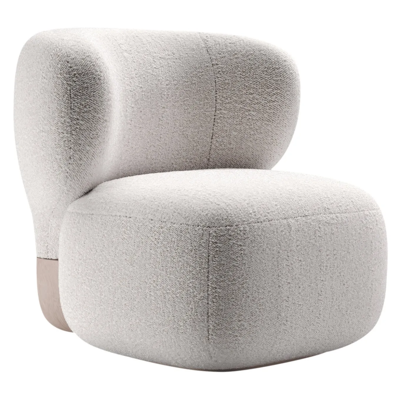 Asawa Lounge Chair, progettata da Artefatto Design Studio, si distingue per il suo schienale scultoreo e organico. Realizzata con un robusto pezzo in legno massello, questa sedia in Special Bouclé Pearl Bush presenta una struttura curva e avvolgente, creando un’accoglienza unica e comfort. La sua eleganza naturale e il profilo distintivo la rendono un elemento d’arredo perfetto. è personalizzabile in una varietà di tessuti, pelli e finiture in legno, offrendo versatilità e stile per ogni ambiente.
