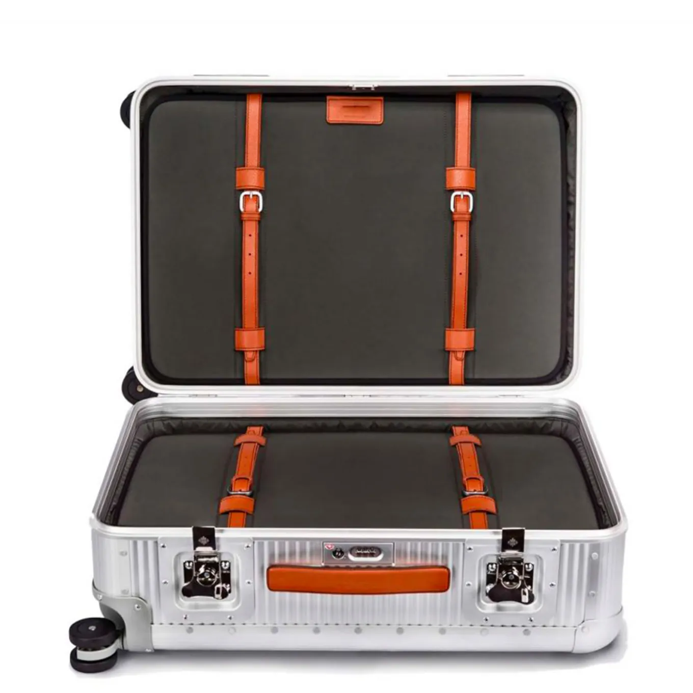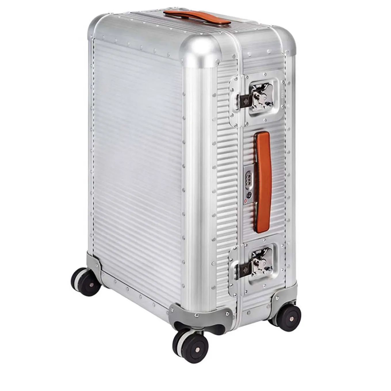 Esclusivamente Made in Italy, le valigie Bank si ispirano ai bauli di un tempo rivisitati in chiave moderna. I gusci in alluminio, spessi 10 micron (?), abbinati alle speciali chiusure Butterfly, garantiscono protezione e resistenza agli agenti atmosferici. Le doppie ruote assicurano facilità di trasporto e gli interni con divisori per gli scomparti e dettagli in pelle garantiscono una perfetta organizzazione del contenuto.