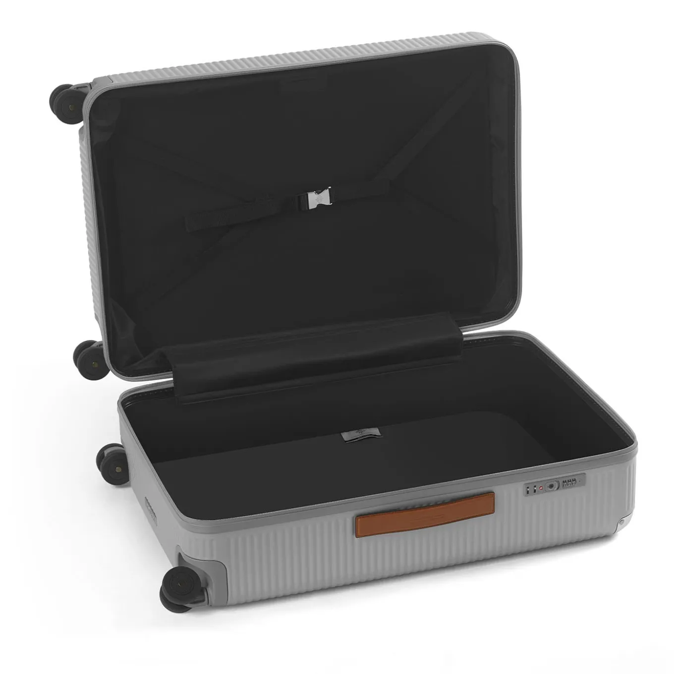 Bank Zip Deluxe è la collezione made in Italy in policarbonato sviluppata per conferire leggerezza e praticità e si distingue per la chiusura a zip. L’elastico con logo ricamato si chiude con l’iconica serratura a farfalla in alluminio, immancabile firma del marchio. I manici in pelle, gli angoli in alluminio e le quattro ruote duali garantiscono uno spostamento facile e senza sforzo.