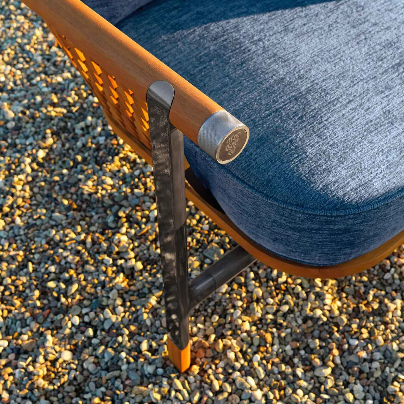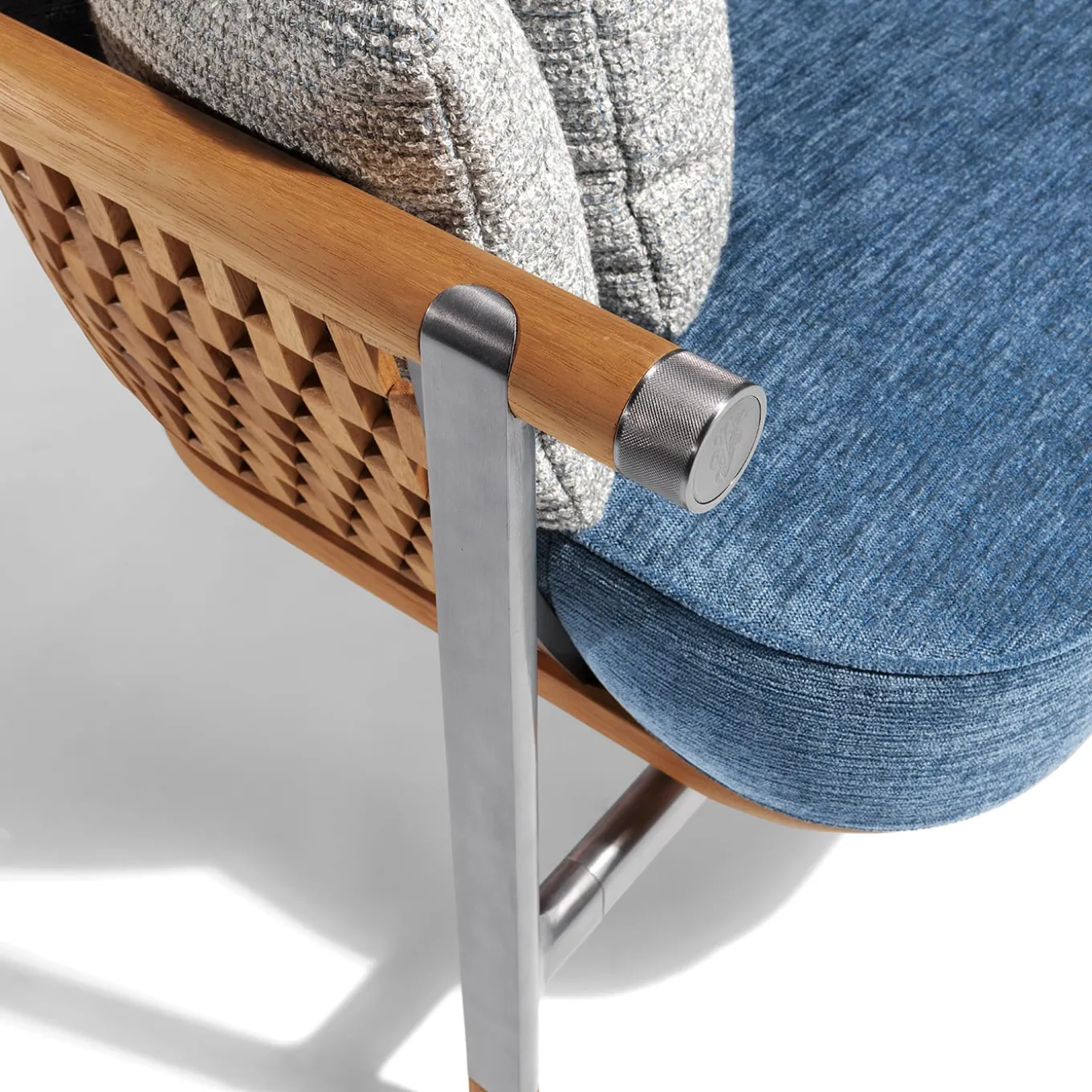 Il divano Basket offre un mix perfetto di lusso e funzionalità per la vita all’aperto. Rivestito in tessuto azzurro, la seduta e lo schienale offrono un comfort eccezionale. La struttura, realizzata in legno massiccio naturale con finitura opaca, garantisce durata e stile. Gli accenti in acciaio inossidabile satinato in nichel nero aggiungono un tocco moderno, mentre i cuscini sciolti in tessuto grigio chiaro completano il design sofisticato.