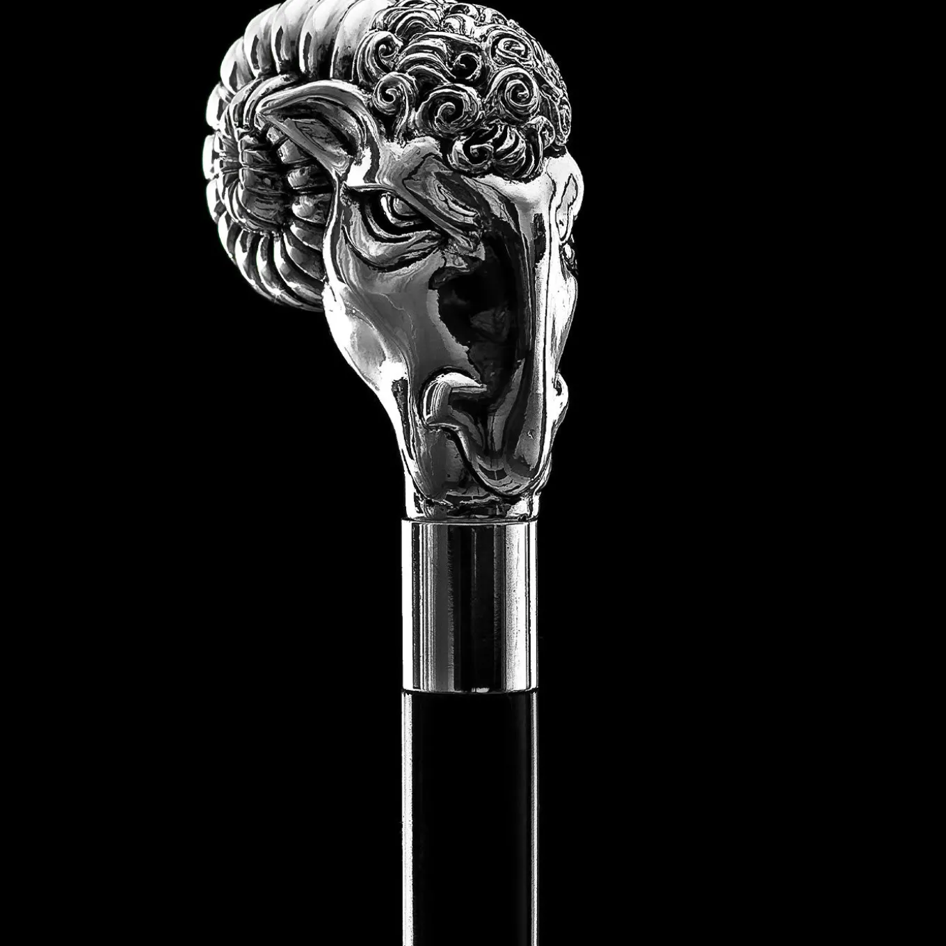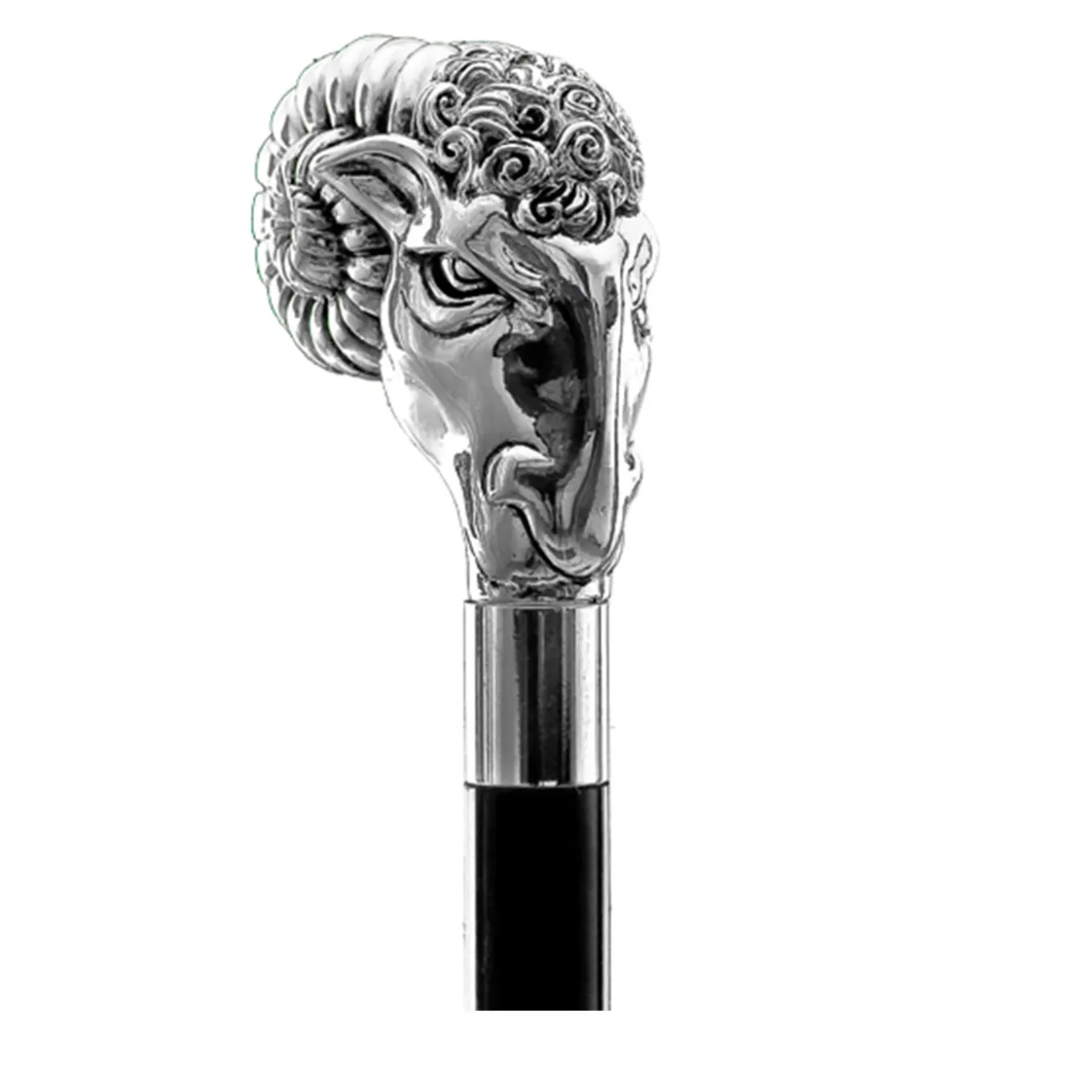 Caratterizzato da un design elegante e classico, questo bastone presenta un manico in metallo riccamente decorato con eleganti motivi in rilievo sulla superficie. L’asta conica di questo sofisticato accessorio è realizzata in legno di faggio nero lucido e presenta una punta in ottone argentato con estremità protettiva in gomma. Si tratta di un oggetto da collezione, da non utilizzare per camminare.