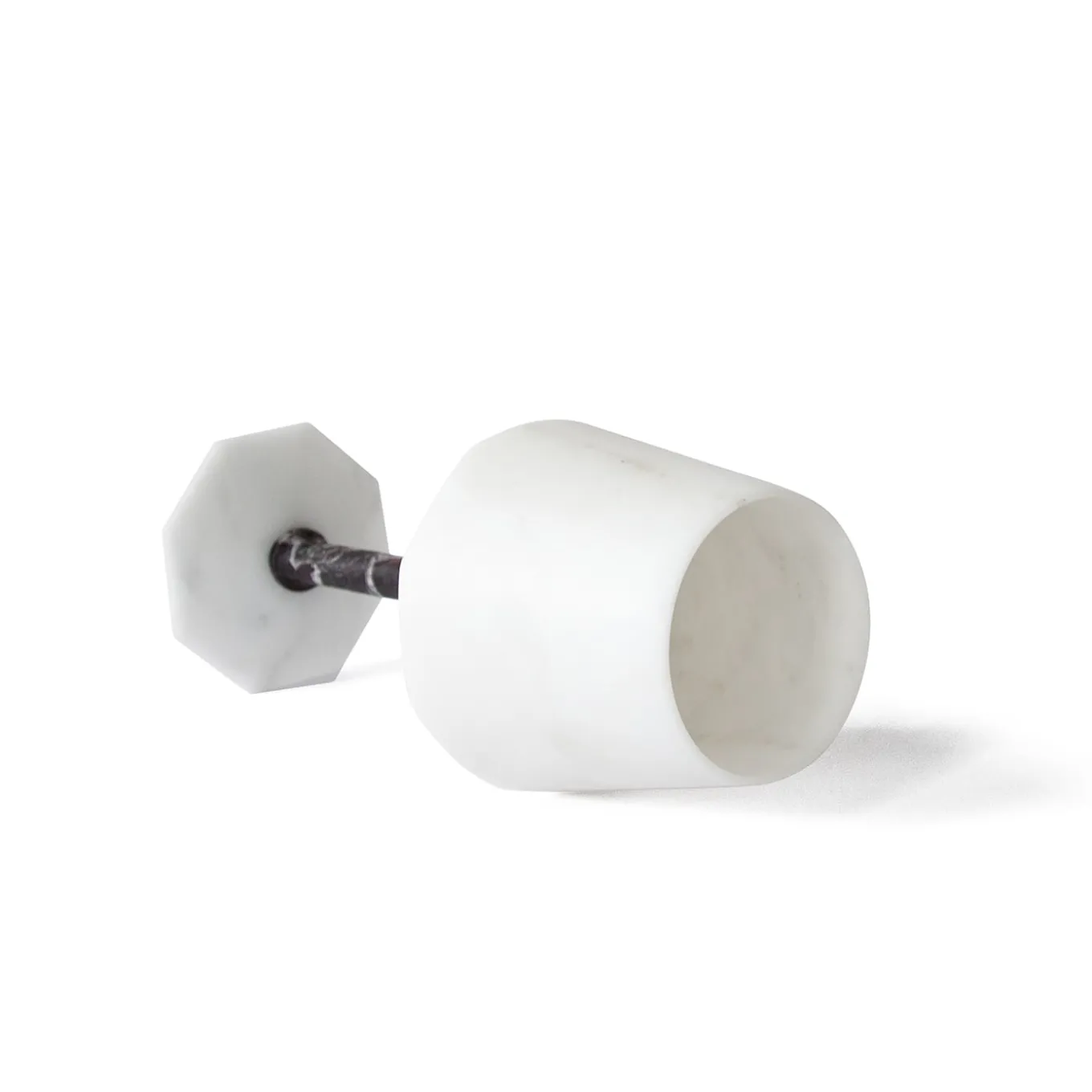Bicchiere da vino in marmo bianco satinato di Carrara e rosso Levanto. Ogni pezzo è in qualche modo unico (ogni blocco di marmo è diverso per venature e sfumature) e realizzato a mano da artigiani italiani specializzati da generazioni nella lavorazione del marmo. Lievi variazioni di forma, colore e dimensione sono da considerarsi garanzia di una creazione artigianale. È importante non usare limone o aceto, pulire solo con acqua e sapone naturale (come il sapone di Marsiglia), non mettere in lavastoviglie.