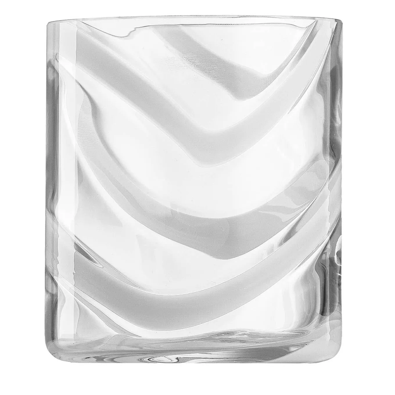 Grazia eterea e rigore geometrico convivono senza sforzo in questo esclusivo bicchiere tumbler in prezioso vetro di Murano. Sottili fili di vetro bianco tracciano onde fluide contro il suo corpo cilindrico, interrompendone la chiarezza con una decorazione luminosa e fresca. Nel catalogo Artemest sono disponibili varianti nere e rosse per composizioni coerenti e colorate.