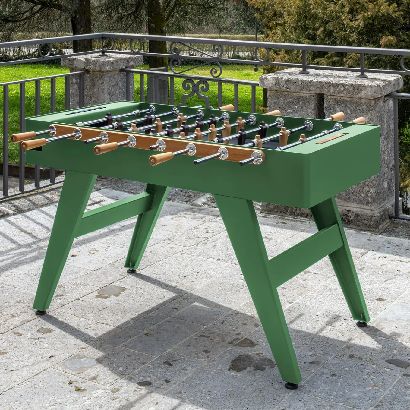 Biliardino Calciobalilla Boss in legno Iroko Verde